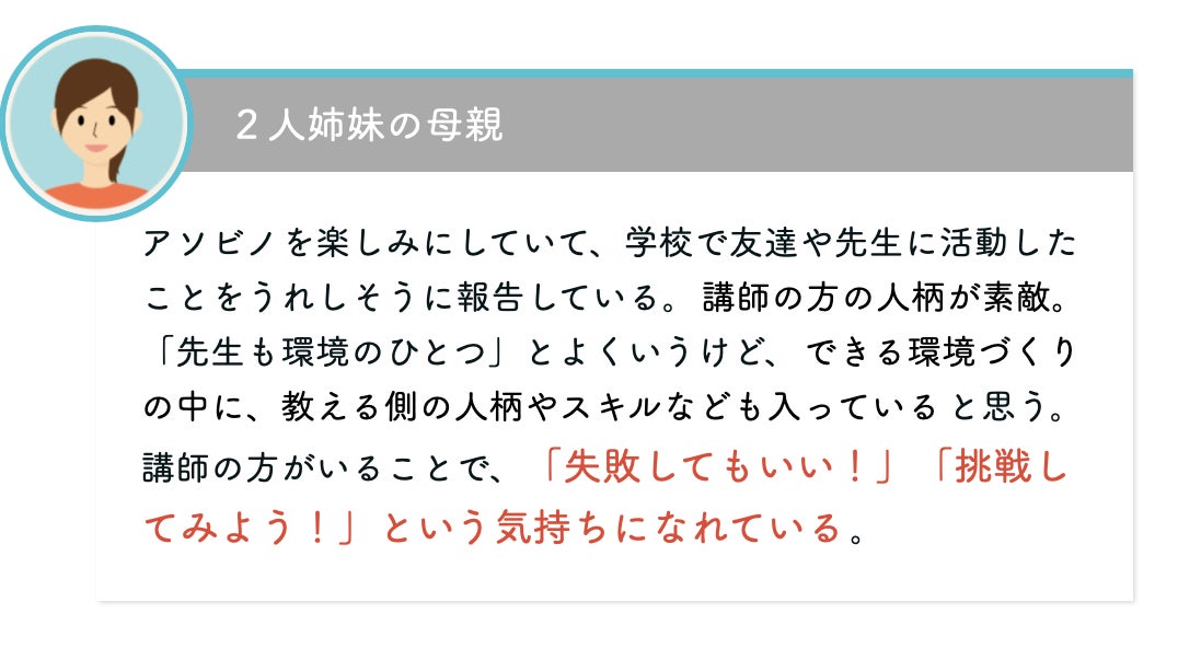 保育士資格と幼稚園教諭免許を持ちつつも、10年間の多様な社会人経験を経てから教育現場に着地した私は、海外と比べて目で見てわかりやすい指標(テストの点数など)だけが重視されがちな日本の教育に戸惑いを覚え、「アソビノ」という教室を生み出しました。