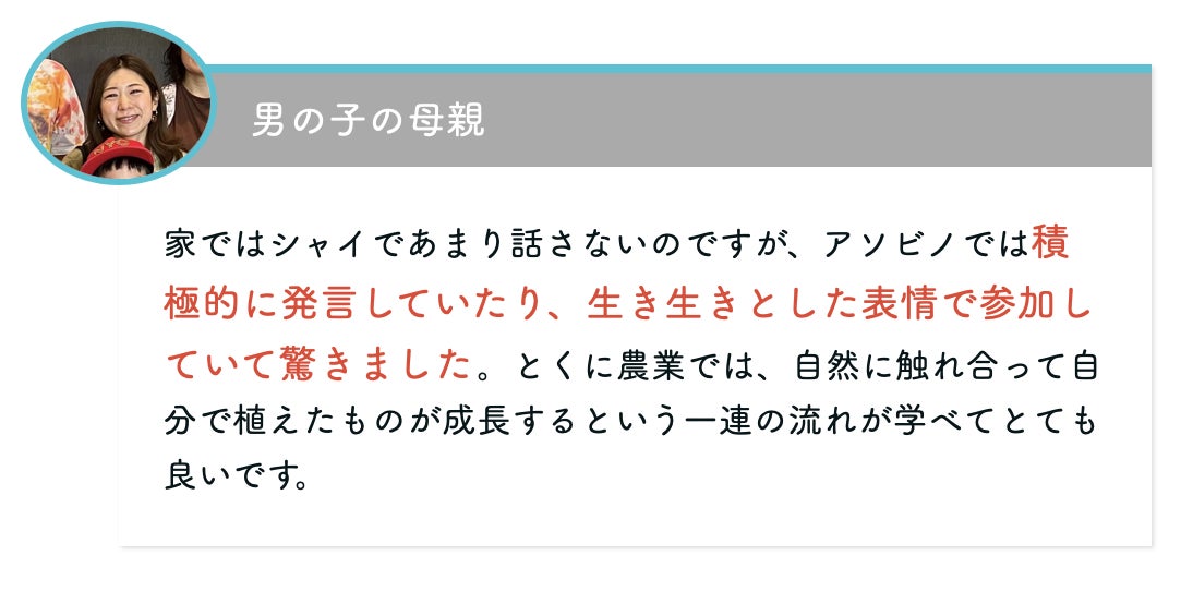 このプログラムに共感し、賛同してくださった皆様、ぜひとも一緒に子どもの育成に尽力していきましょう。 1人でも多くの方が共感し、手を取ってくださることを祈っております。