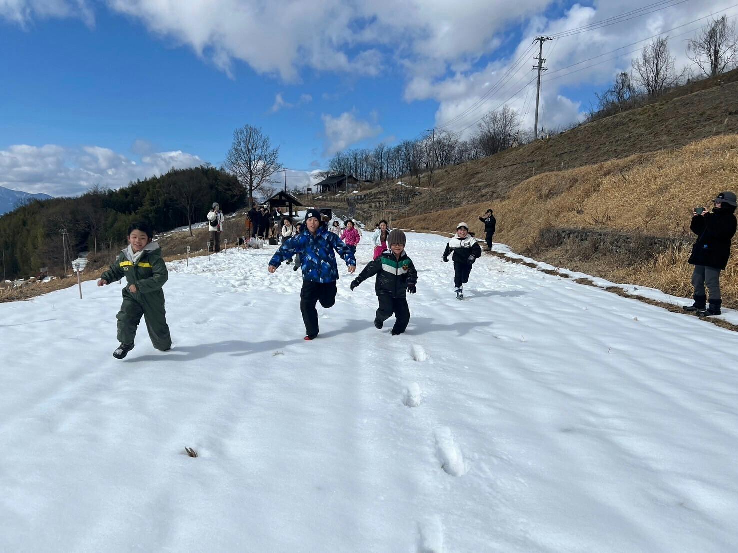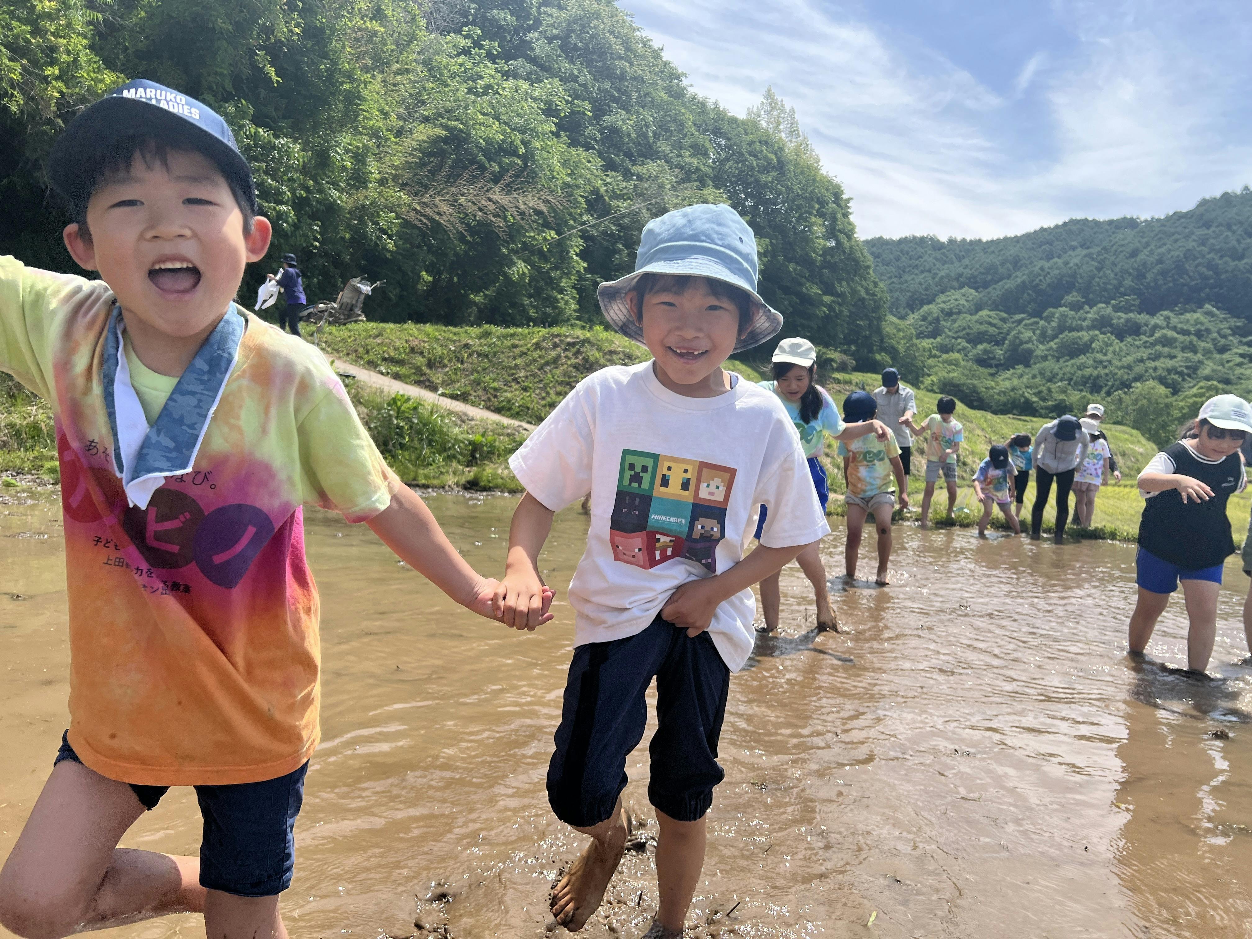 アソビノでは、「自然体験」カリキュラムがあり、田植えや稲刈りをする「農業」のほか、夏には「山あそび・川あそび・森あそび」、冬には雪合戦やスノーシューなどの「雪あそび」を思いっきり楽しんでいます。