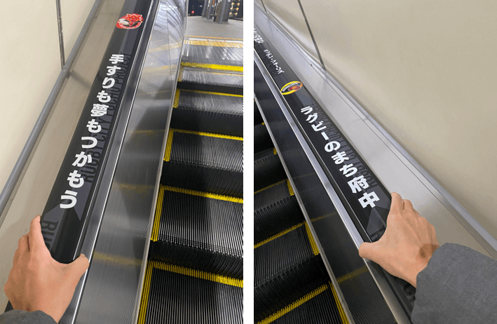 ユニバーサルデザインのエスカレーター装飾を
