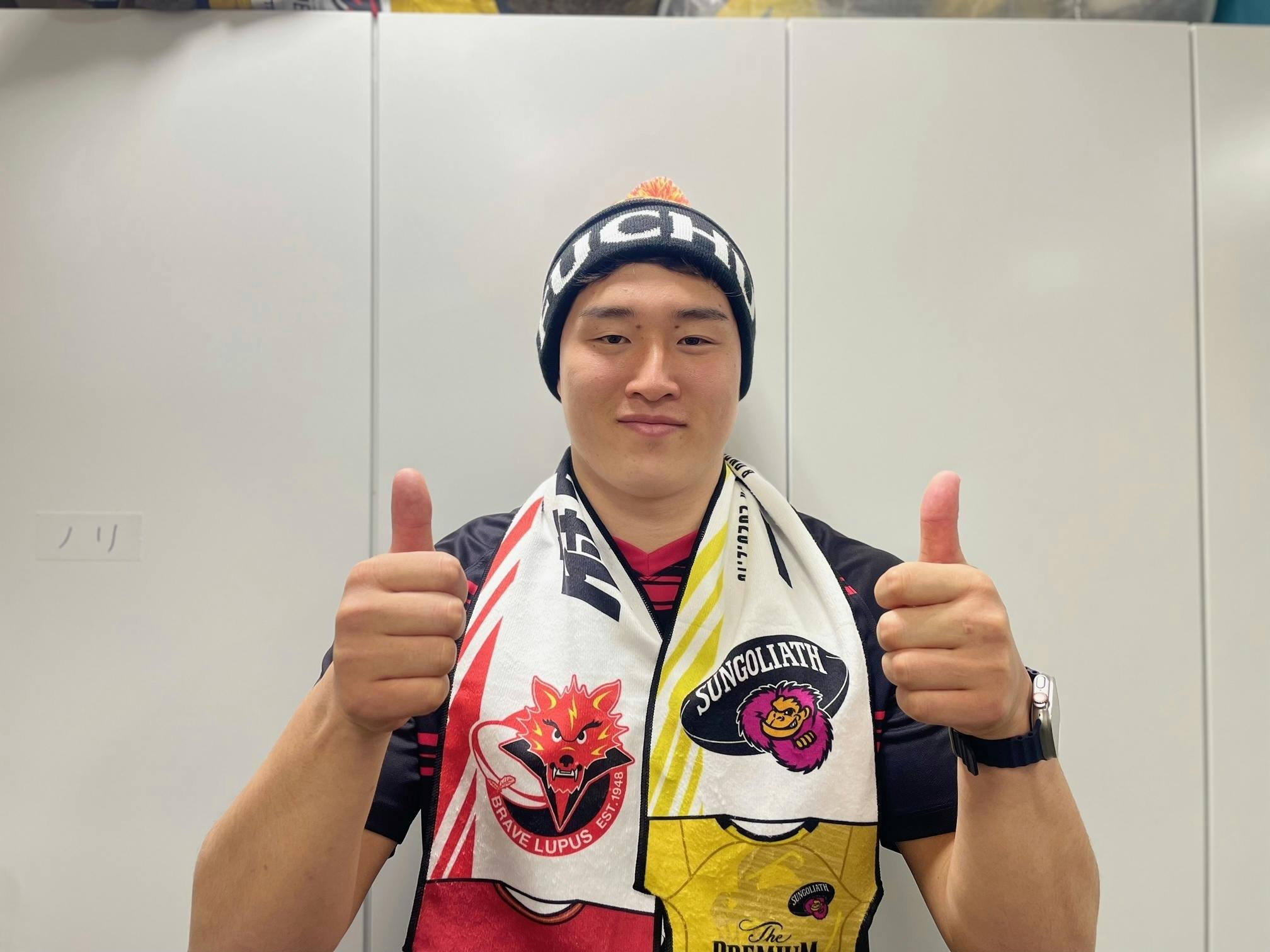 新プラン応援企画として東京サントリーサンゴリアスの選手に実際に着用いただきました。キュートな画像もお楽しみください。下川甲嗣選手、大越元気選手、髙本幹也選手、ご協力ありがとうございました。