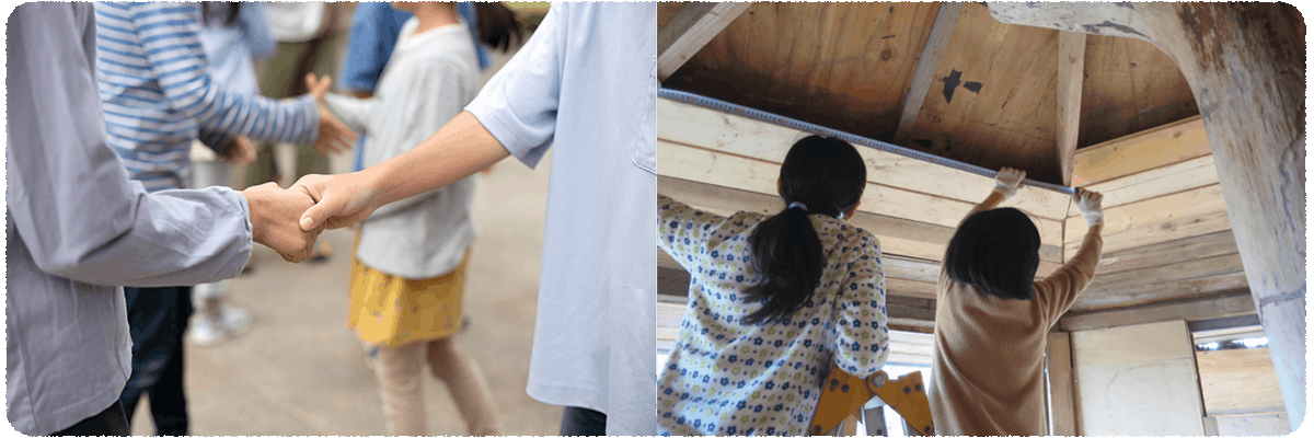 2016年、多くの方々の助けをいただいて、5人の子どもたち・3家庭による、小さな学び舎が誕生しました。以来、教師と保護者が手をたずさえ、健やかな学びを守るために力を合わせてきました。9年目の現在、17名の子どもたちが通い、大家族の兄弟姉妹のように支え合いながら育っています。
