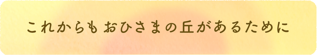 今後いただいたご支援は、今年度、来年度、さらにその先もおひさまの丘が存続するために使わせていただきます。