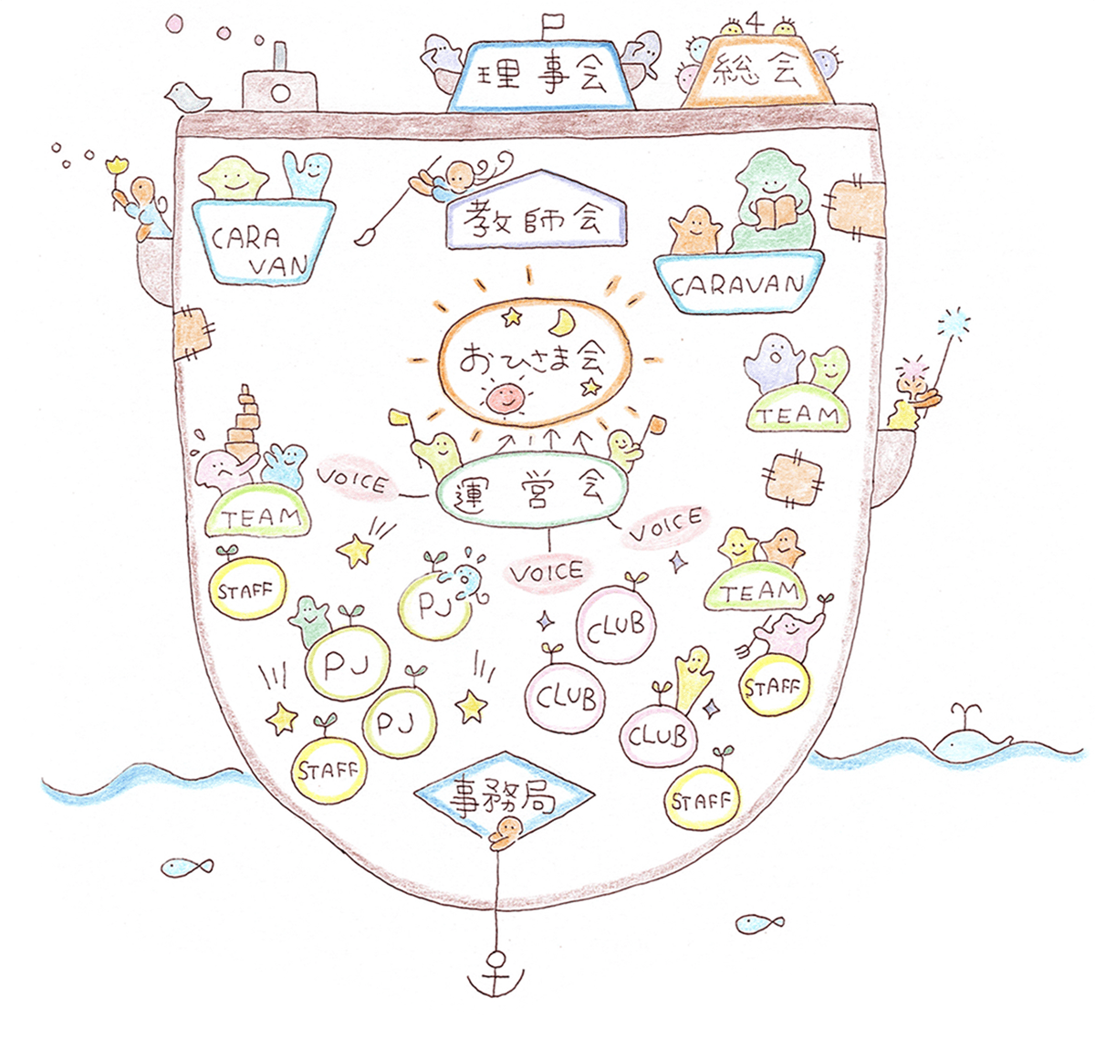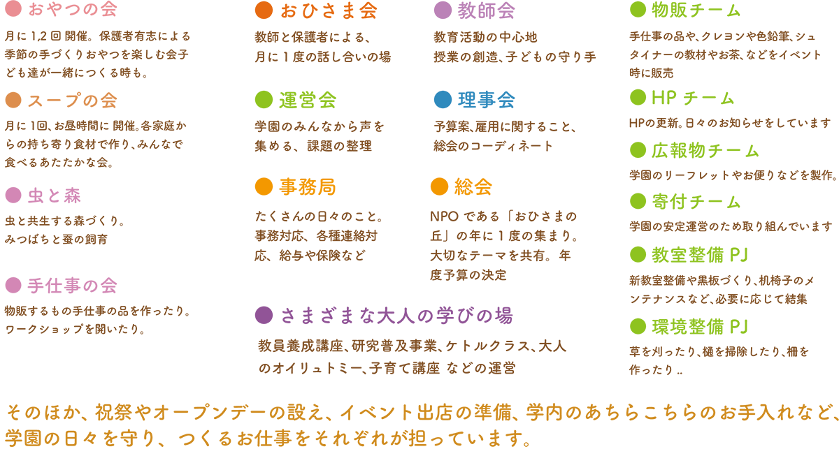 学園では、運営のあらゆることを、教師と保護者で協力・分担しています。