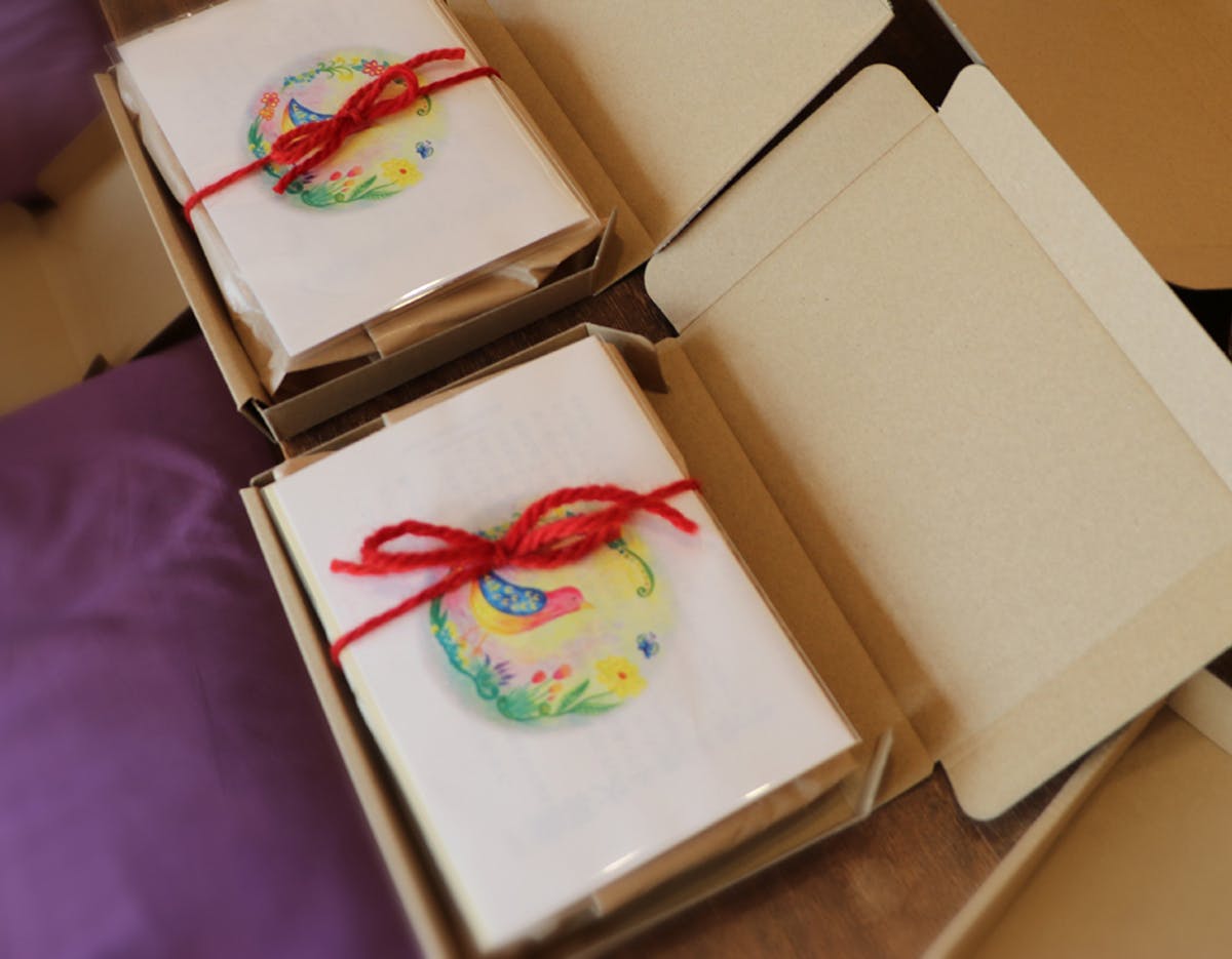 2025/02/03 19:00ご報告が遅くなりましたが、おかげさまで、先日すべての発送を終えることができました。改めて、ご支援いただいたみなさま、ありがとうございました!遠方の方など、まだ到着していない方がいらっしゃるかもしれません、今しばらくお待ちください。また、こちらで発送チェックをしておりますが、本日から3〜4日後時点で、もしリターンが届いていないという方には、郵送・運送中になんらかのトラブルがあった可能性があります。該当の方はお手数ですがご連絡をお願いいたします。*別途、3月下旬〜4月上旬に「おひさまだより」をみなさんにお送りする予定です・・・・・・・・・・写真は、1月のおひさま会後の発送準備の様子です。ついつい、リターンの種類をたくさん作ってしまったので、笑混乱しながらも、みんなで確認し合いながら進めていきました。おおよその梱包資材は用意していましたが、その場で、こうしたらいいんじゃない?こうすると綺麗にみえるかも、と、アイデアを出しながら準備をするのは楽しい時間でした。バッジはたくさんあるとなんだかかわいいです。台紙をせっせとカットし、穴あけ、封入。すべてのリターンではないのですが、箱のものを中心に掛け紙をつけてみました。ここまでご覧いただきありがとうございました。今後数回、リターン準備の様子を投稿させていただく予定です。よろしければご覧ください^^ もっと見る