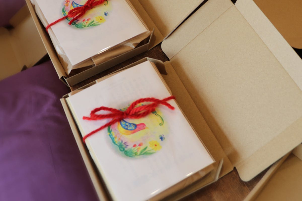 2025/02/03 19:00ご報告が遅くなりましたが、おかげさまで、先日すべての発送を終えることができました。改めて、ご支援いただいたみなさま、ありがとうございました!遠方の方など、まだ到着していない方がいらっしゃるかもしれません、今しばらくお待ちください。また、こちらで発送チェックをしておりますが、本日から3〜4日後時点で、もしリターンが届いていないという方には、郵送・運送中になんらかのトラブルがあった可能性があります。該当の方はお手数ですがご連絡をお願いいたします。*別途、3月下旬〜4月上旬に「おひさまだより」をみなさんにお送りする予定です・・・・・・・・・・写真は、1月のおひさま会後の発送準備の様子です。ついつい、リターンの種類をたくさん作ってしまったので、笑混乱しながらも、みんなで確認し合いながら進めていきました。おおよその梱包資材は用意していましたが、その場で、こうしたらいいんじゃない?こうすると綺麗にみえるかも、と、アイデアを出しながら準備をするのは楽しい時間でした。バッジはたくさんあるとなんだかかわいいです。台紙をせっせとカットし、穴あけ、封入。すべてのリターンではないのですが、箱のものを中心に掛け紙をつけてみました。ここまでご覧いただきありがとうございました。今後数回、リターン準備の様子を投稿させていただく予定です。よろしければご覧ください^^ もっと見る