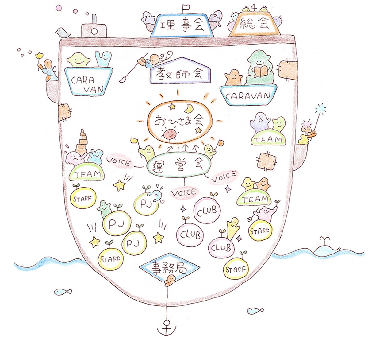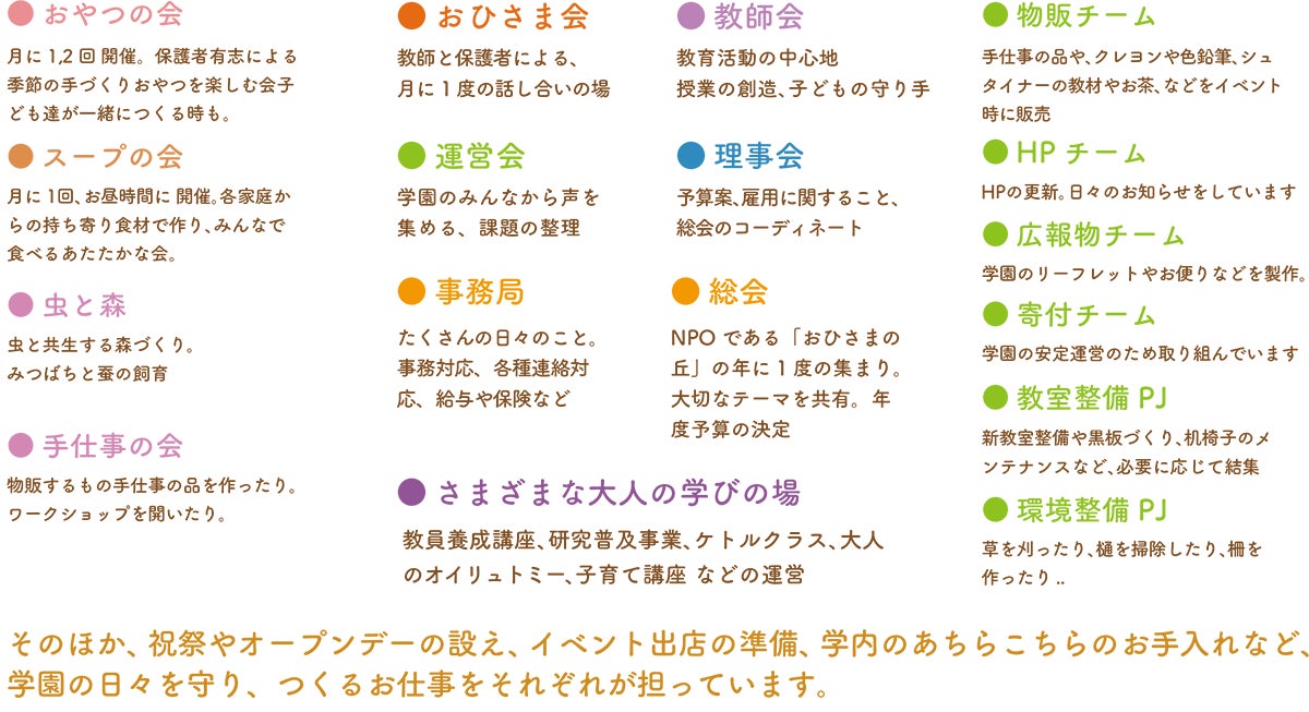 学園では、運営のあらゆることを、教師と保護者で協力・分担しています。