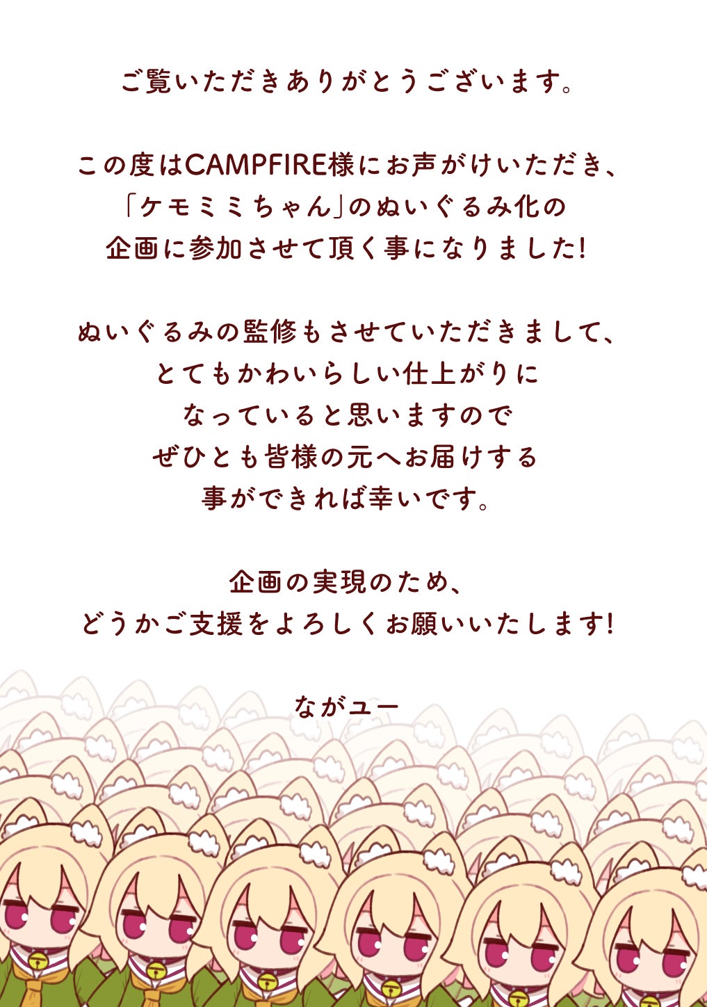 ながユーが描くオリジナルキャラクター「ケモミミちゃん」が初のぬいぐるみ化に挑戦します!