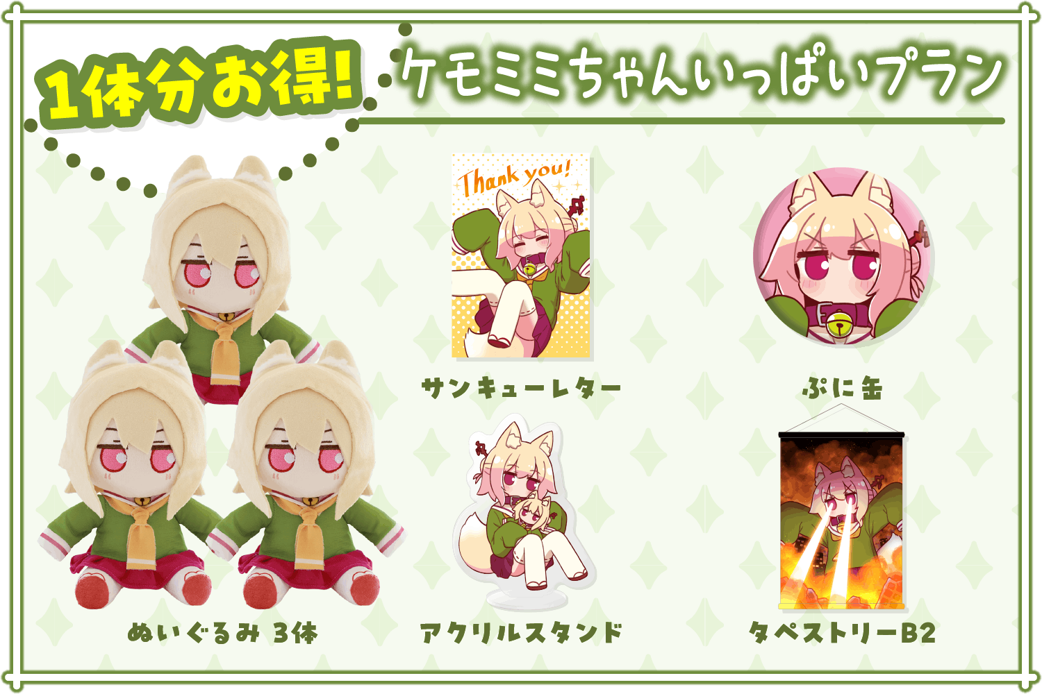 ぬいぐるみとタペストリーがゲットできるプランです!