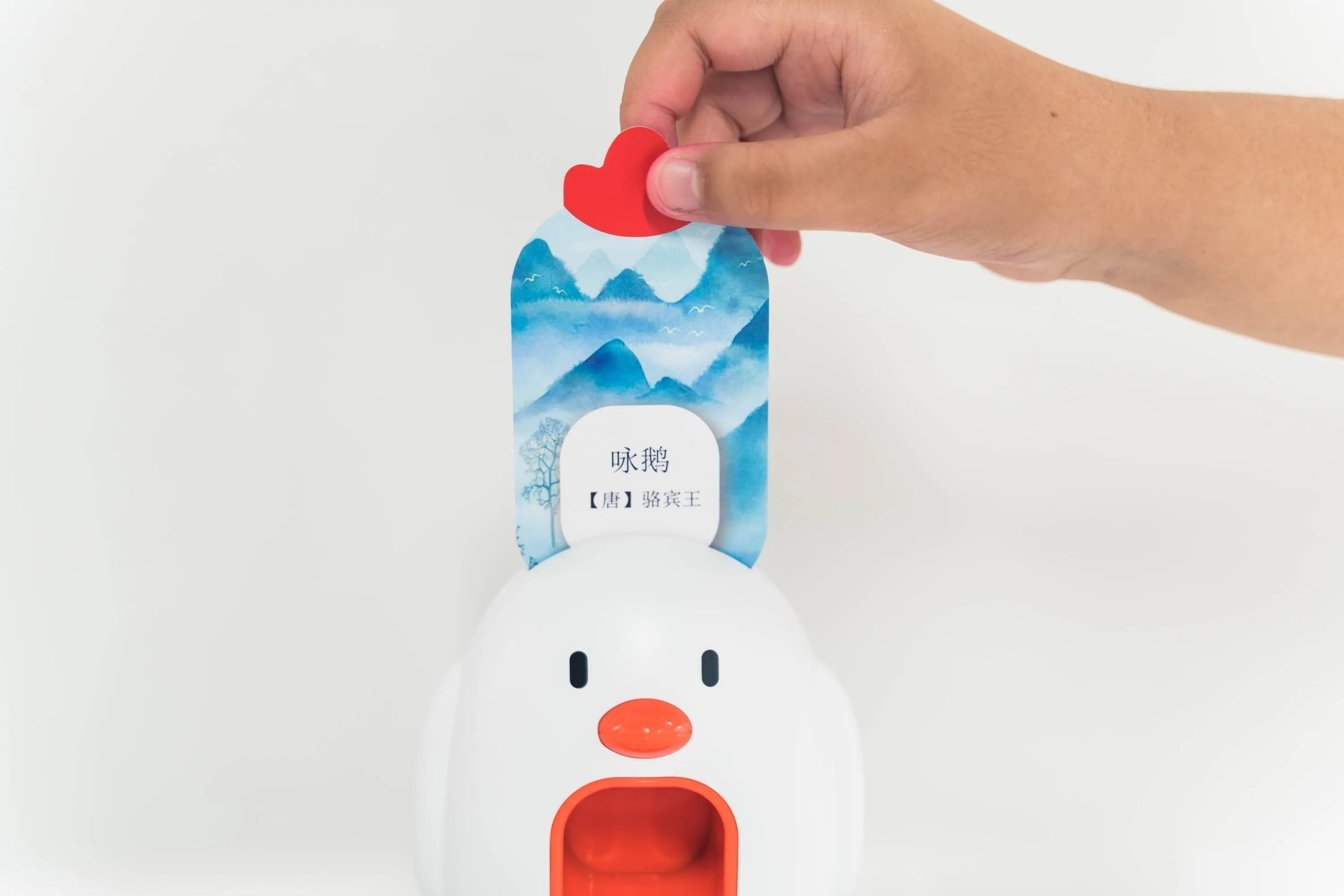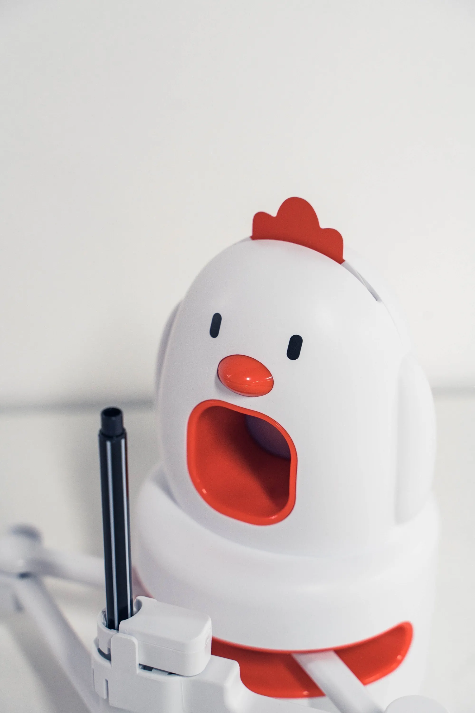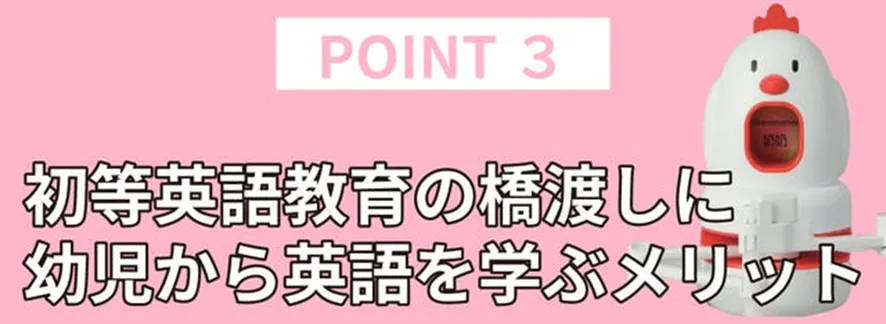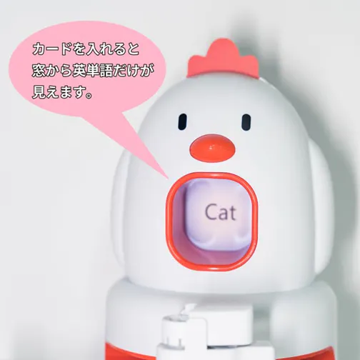 3.電源を入れるとご挨拶。子供の愛着が湧きやすい可愛らしいニワトリのデザインで英語学習が長続き。