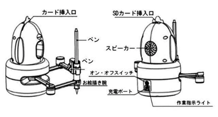 このロボットが画期的なのは、ロボットが図形を描きながら英単語を発し、幼児へ図形に色塗りを促すことで興味を持たせ、楽しみながら視覚、聴覚、触覚という3つの脳の領域を使わせ、記憶として脳へ英単語の定着化を図るところにあります。