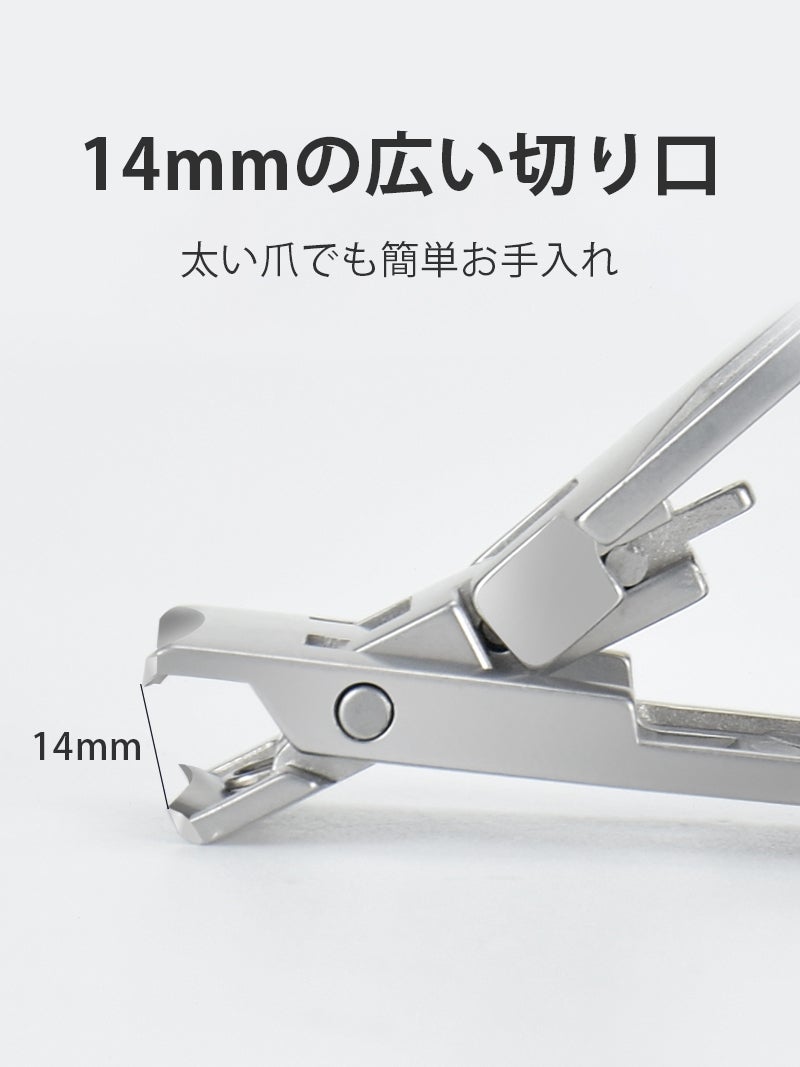14mmの広い切り口で、足の親指などの太い爪も切ることができます。
