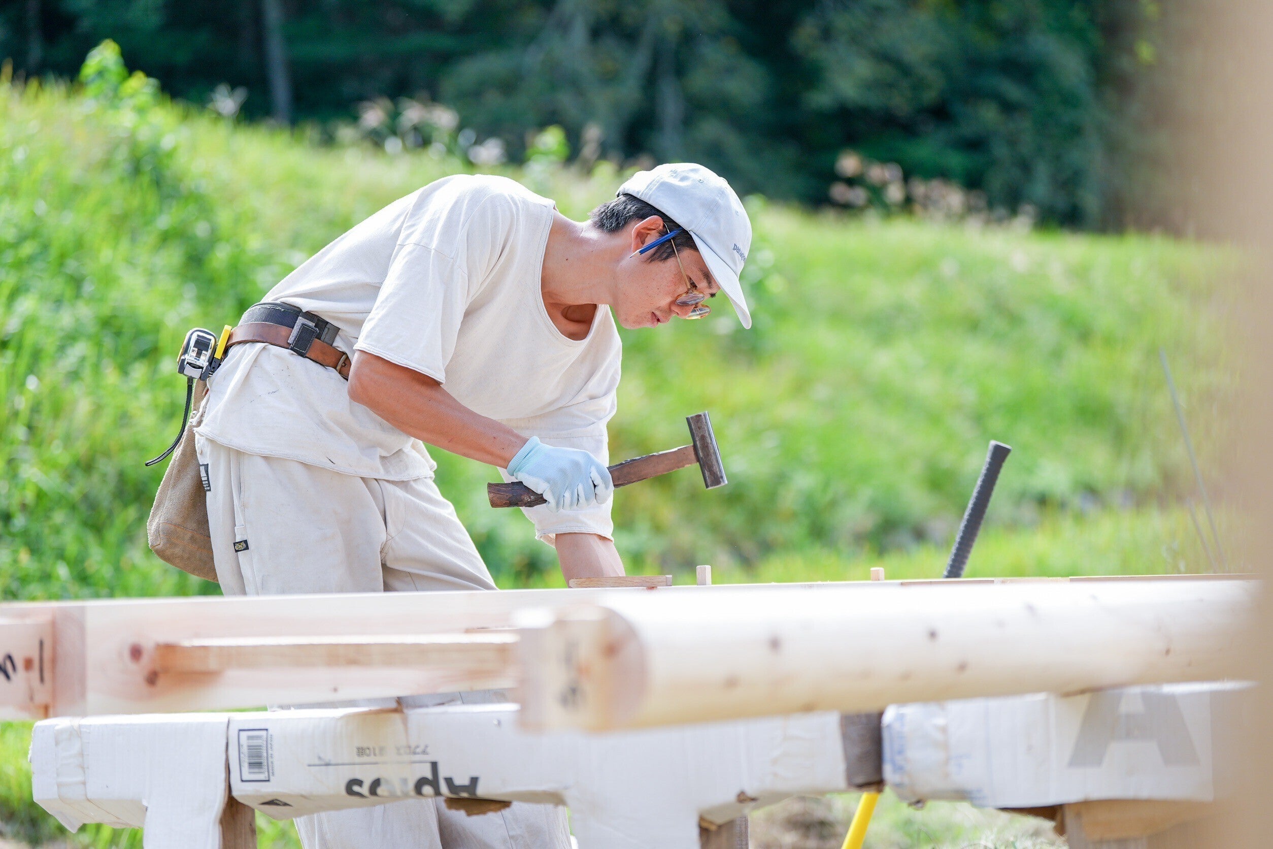 今回お風呂小屋を建ててくれたのは、伝統工法の大工さんの伊吹君。