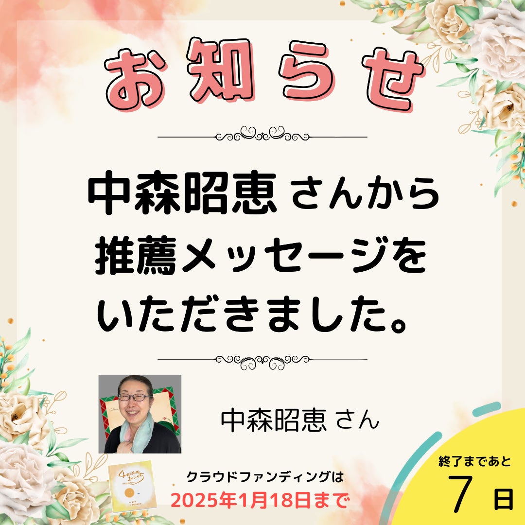 中森昭恵さんから推薦メッセージが届きました!