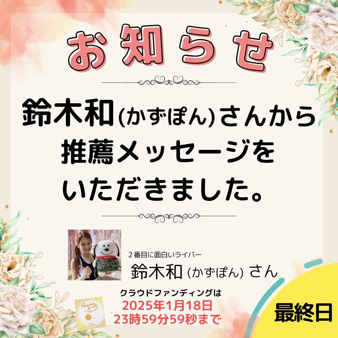 かずぽん ありがとうございます!先日も一緒にライブ配信をさせていただきました!とっても楽しい時間でした。