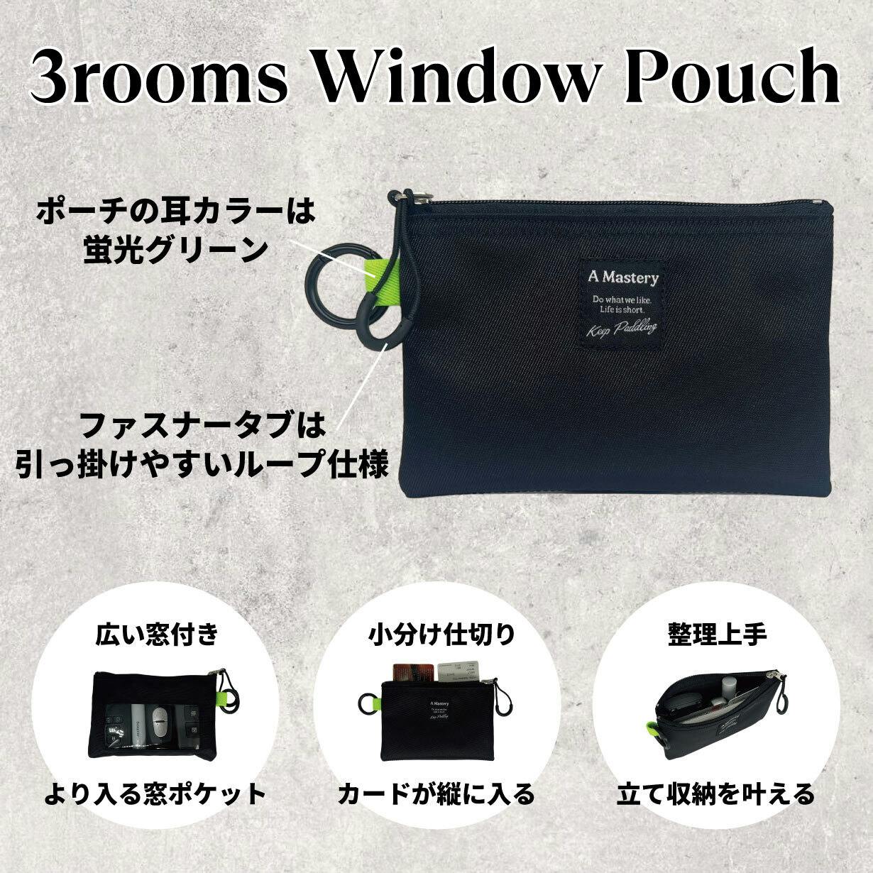 収納力と取り出しやすさを優先し前面ファスナーではなく上部位置ファスナーを採用し、リップや塗り薬などの細長いものを取り出しやすいように設計。さらに真ん中の収納部屋には「立て収納」を実現する小分け仕切りを設置。 ライフスタイルや趣味・仕事など、ウォレットよりさらに広いウインドウを採用。