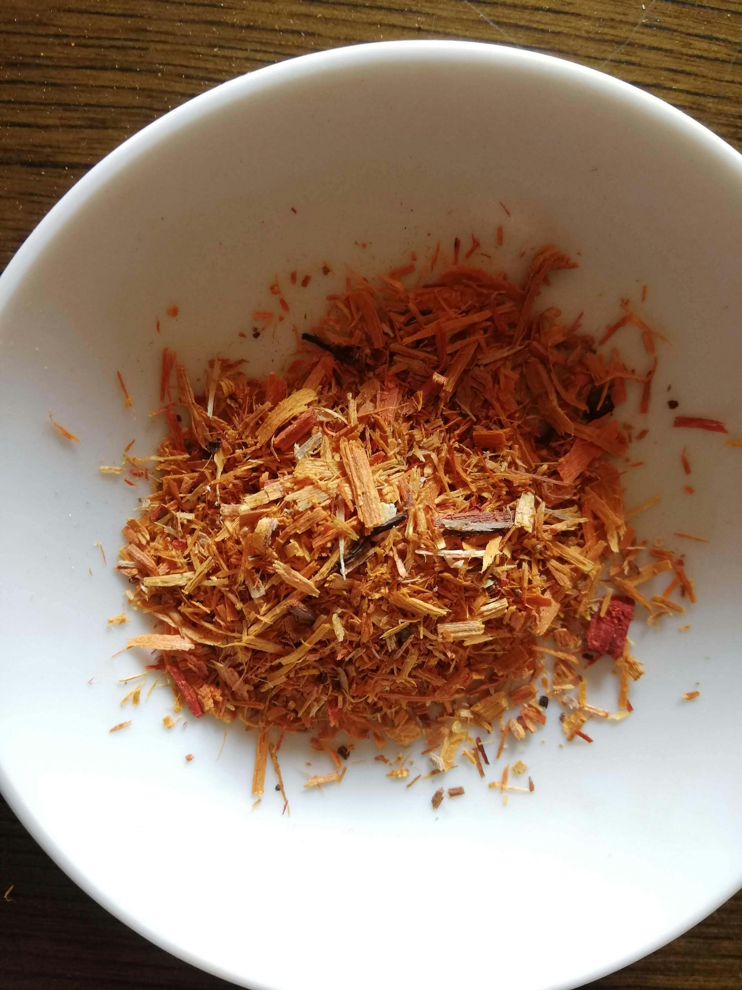 このお茶は、蘇芳(スオウ)の木を煮出したもので、南インドでアーユルヴェーダに使われるものだそうですが、味も香りもほとんどありません。