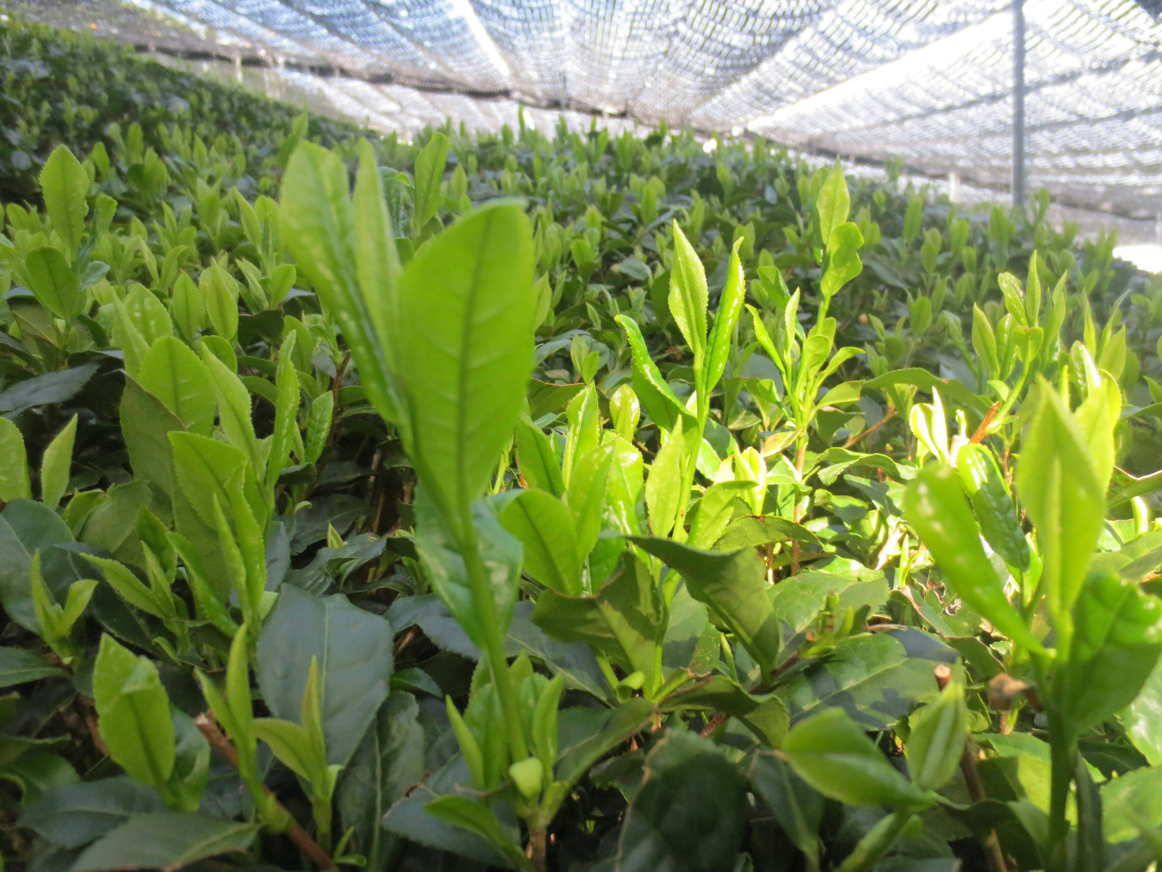 以前のお茶の紹介(碾茶てんちゃ)のところでご説明した栽培方法と同じく、収穫前に茶の木を覆って栽培します。玉露の場合は、約20日程覆います。