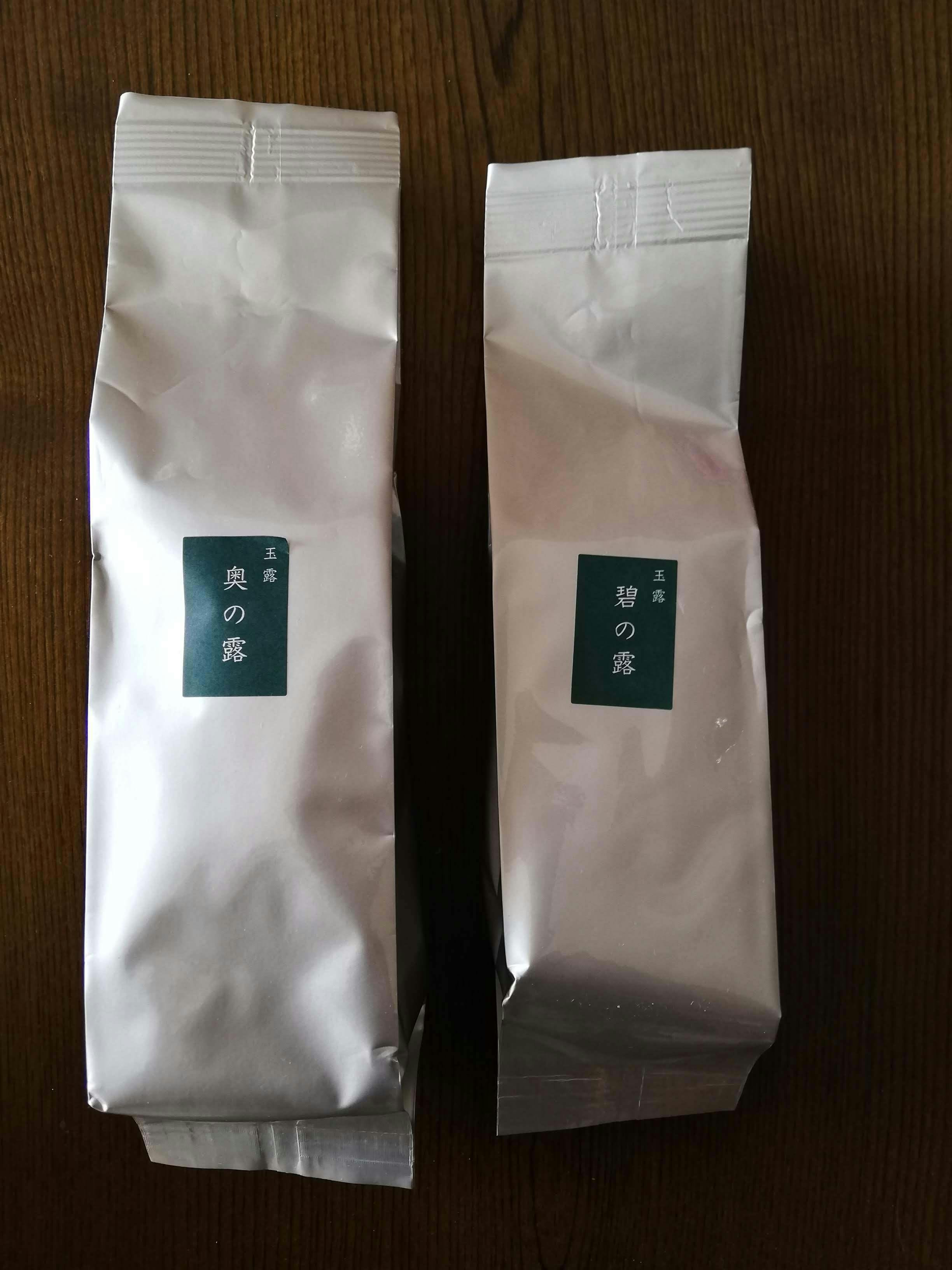 高級茶餅セットの方には、「奥の露」という玉露、普通の茶餅セットの方には、「碧の露」という玉露を使います。