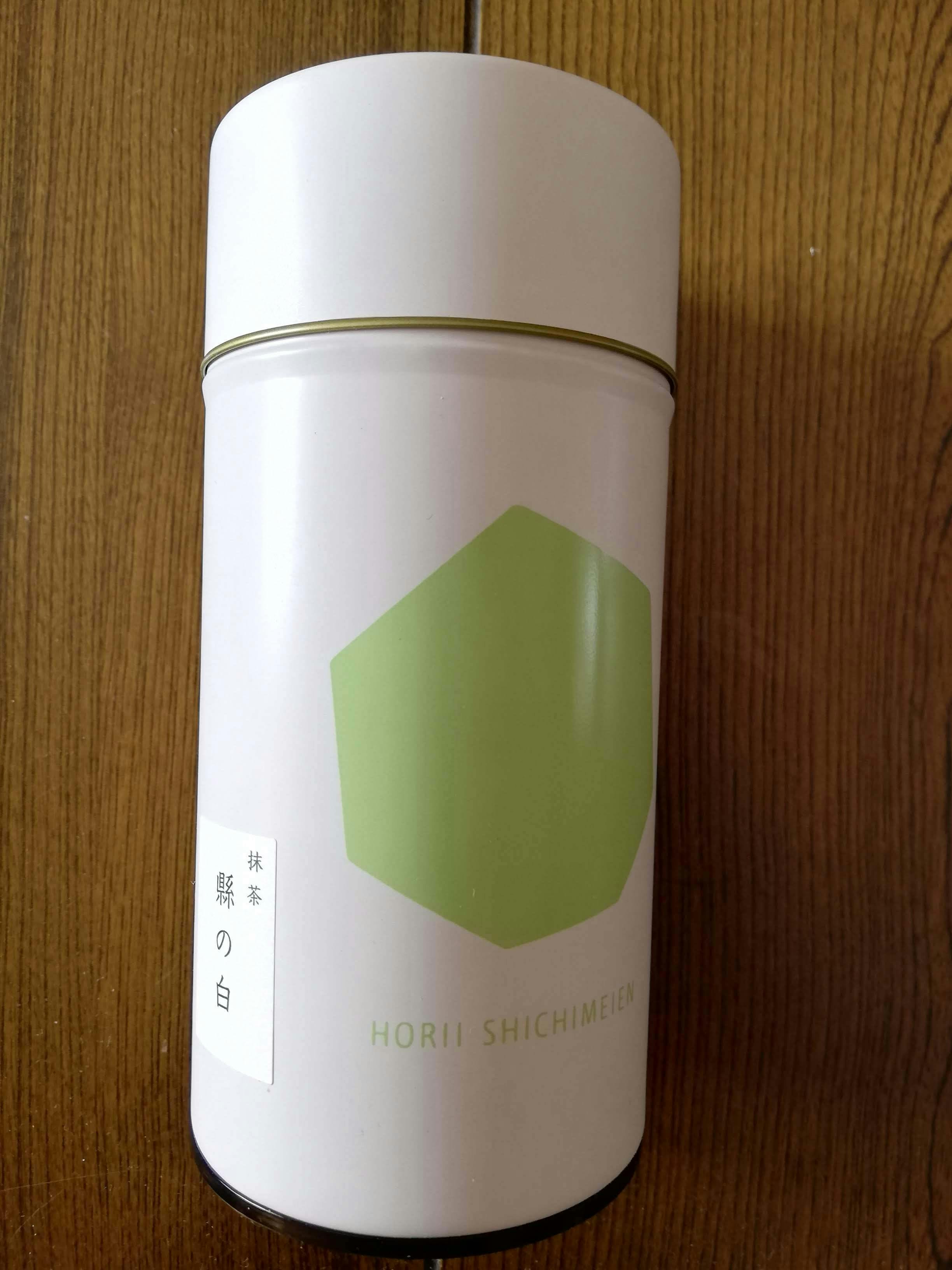 今回、高級茶餅セットの方に使う抹茶は、ほうじ茶のところと玉露のところでもご紹介しました、宇治の茶問屋の老舗、堀井七茗園(上の動画の一番目に登場します)の「縣の白」という抹茶です。冒頭の写真がその抹茶が入っている缶です。
