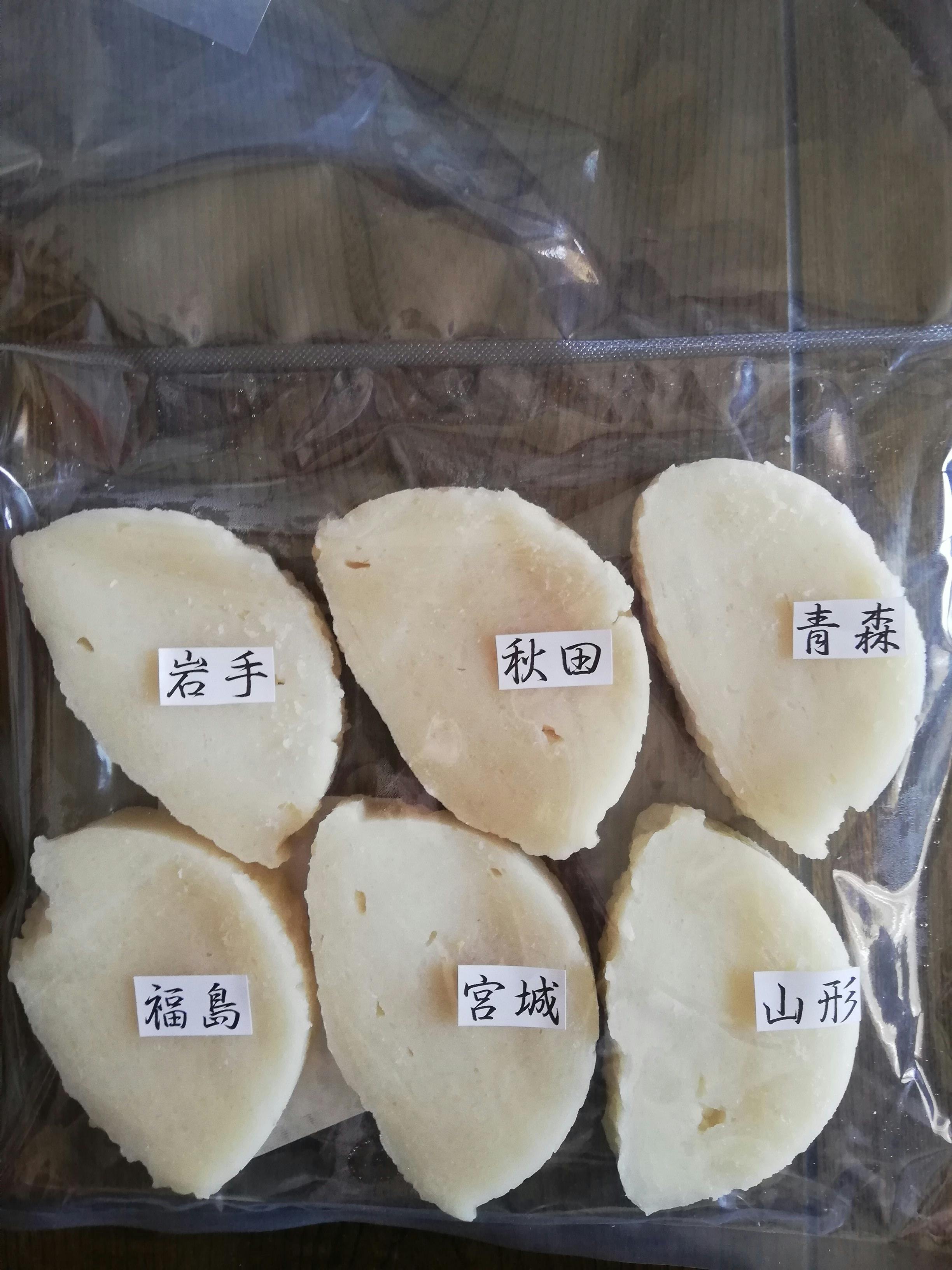 こちらは、東北6県各県から品種別に取り寄せたもち米を使用して製造した白餅のセットです。