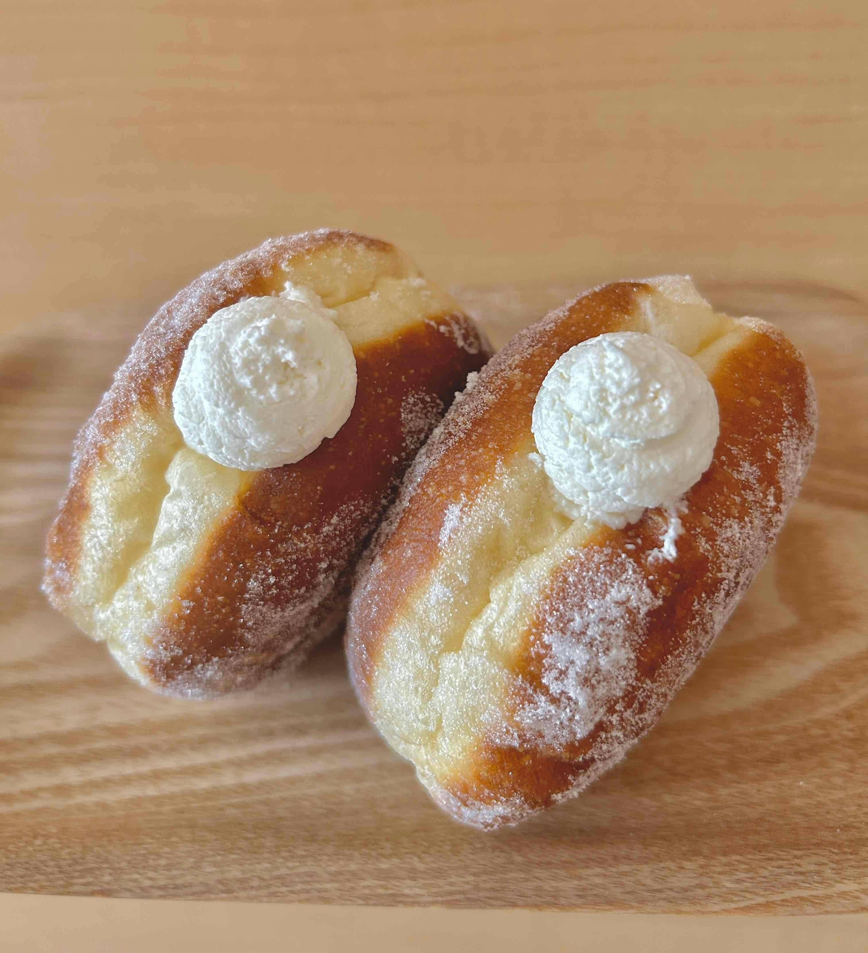 「リスとドーナツ」自慢の生ドーナツは、生乳100%の純正クリームにこだわったドーナツです。頬張るとすぐにクリームが口いっぱいに広がるよう、たくさん詰め込みました。