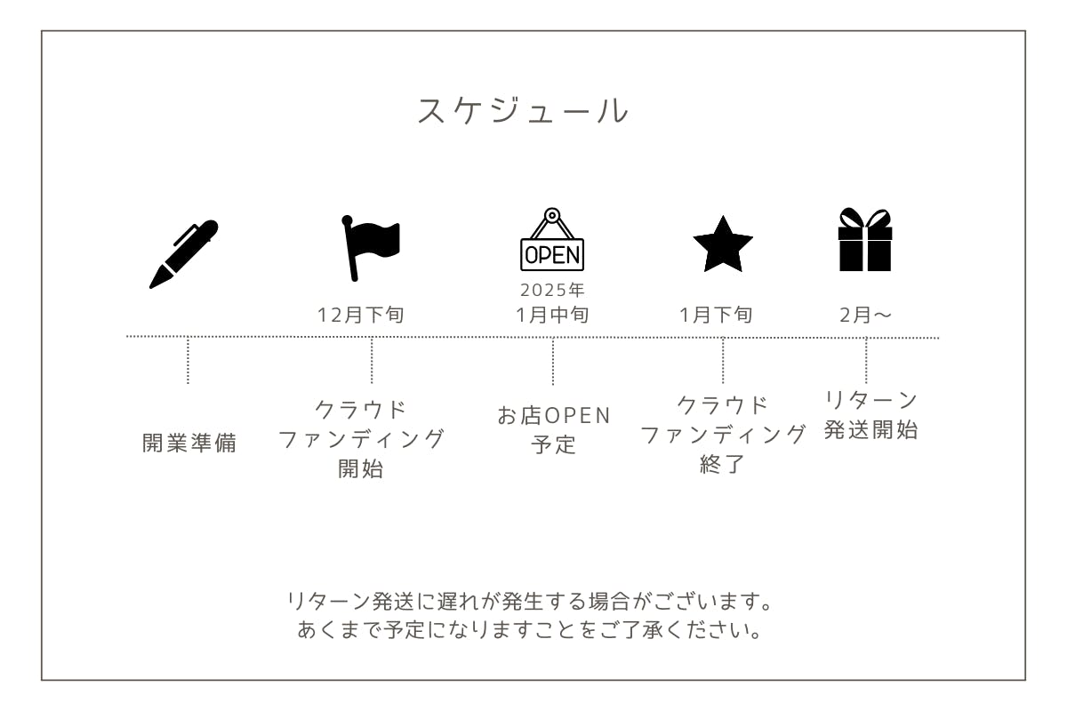 2025/02/05 21:35こんにちは、リスとドーナツです!1月31日でクラウドファンディングが終了し、すぐに活動報告を更新したかったのですが、プライベートがバタバタと忙しくなってしまい、それと2月3日と4日のお店営業日などなどで、更新が遅くなってしまいました...。改めまして、クラウドファンディングにご支援いただいた皆様、本当にありがとうございました!プロジェクトは最終的に、・601,500円・支援者141人(達成率120%)支援総額・支援者が集まりました!!!目標を大幅に達成することができ、141人という多くの皆様にご支援をいただいて、驚きとともに感謝の気持ちでいっぱいです。みなさま、本当にありがとうございます。また、SNSでのシェアなどにも協力いただき、本当にありがとうございました!さて、プロジェクトが終了し、皆さまへリターンのお送りを開始しております。いつ届くのか?と気になる方も多いかと思いますが、こちらの活動報告のほうで、発送の報告などもさせていただきますので、ぜひ、こちらを引き続きチェックいただけますと幸いです。【お店営業日のお知らせ】リスとドーナツ寄居シェアキッチンrutsuboにて、営業しております。営業日は月曜日と火曜日。次回の営業日は、2月10日(月)、2月11日(火祝)です!11日は祝日となるラッキーデイ!混み合う可能性が高いので、ぜひ事前予約がおすすめです。13:00〜 オープン。事前予約はInstagramのDMにて受付中。ぜひ「リスとドーナツ」とInstagramで検索してフォローして、メッセージをお送りください!【MENU】・3種のドーナツセット ¥1100(生ドーナツ、プレーンドーナツ、月替わりのドーナツの3種が入ったセット)*生ドーナツは生クリーム入り*プレーンはクリームなし、シュガーかけ*月替わりのドーナツは、その月々によって変わるドーナツ。2月10日、11日の月替わりドーナツは、チョコレートクリームのドーナツです!また、事前予約に限り、・生ドーナツ ¥400・プレーンドーナツ ¥300の単品もご注文できます。ご来店予定の方は、ぜひ、事前予約がおすすめです!皆さまのご来店を心よりお待ちしております(^^) もっと見る