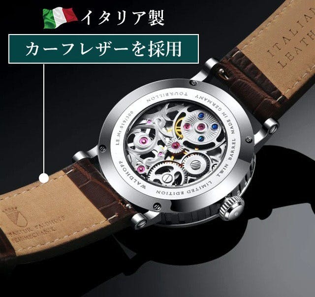 WALDHOFF社の『トゥールビヨン・コレクション』は、デザインはもちろんのこと、ケースや風防といった細かなパーツひとつ一つも「本物」にこだわっています。