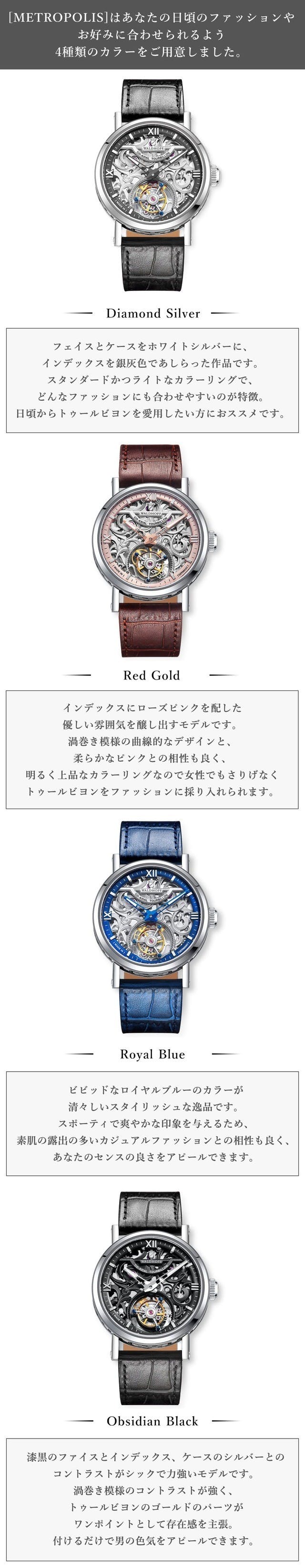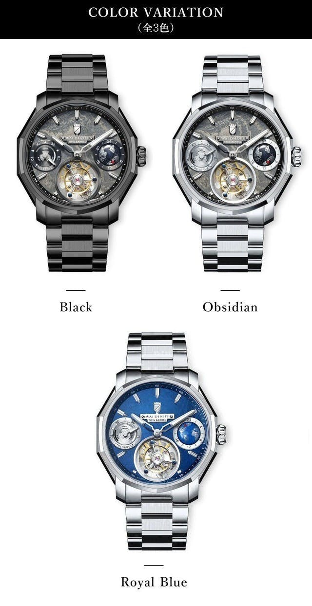 WALDHOFF社の『トゥールビヨン・コレクション』はハイエンドユーザーの方も満足して頂けるように、高級腕時計で世界をリードするスイスのデザイナーを招聘してデザインしています。