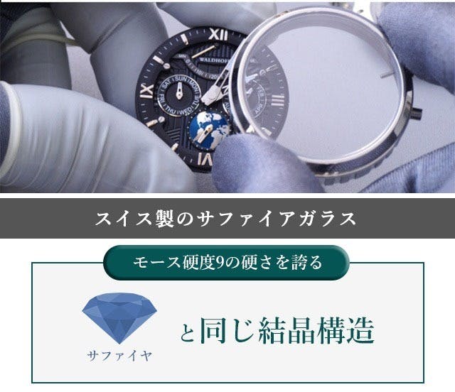風防にはスイス製のサファイアガラスを使用。