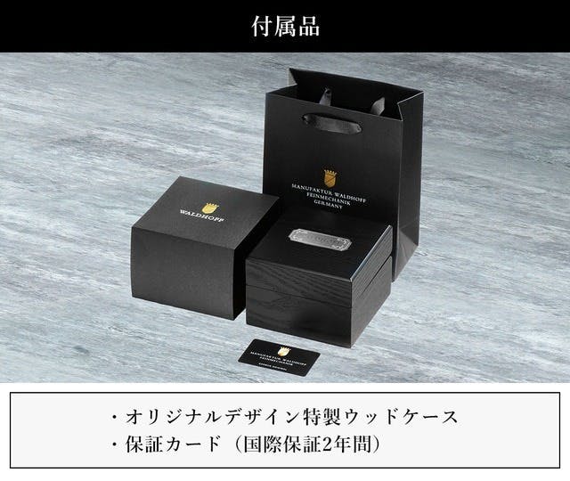 WALDHOFF社はその品質を担保するため、生産した時計全てに個別の識別番号を付属し、さらに末永くご愛用頂くために、万が一故障したとしても全世界からの修理に対応する国際保証2年間のサービスも付随しています。
