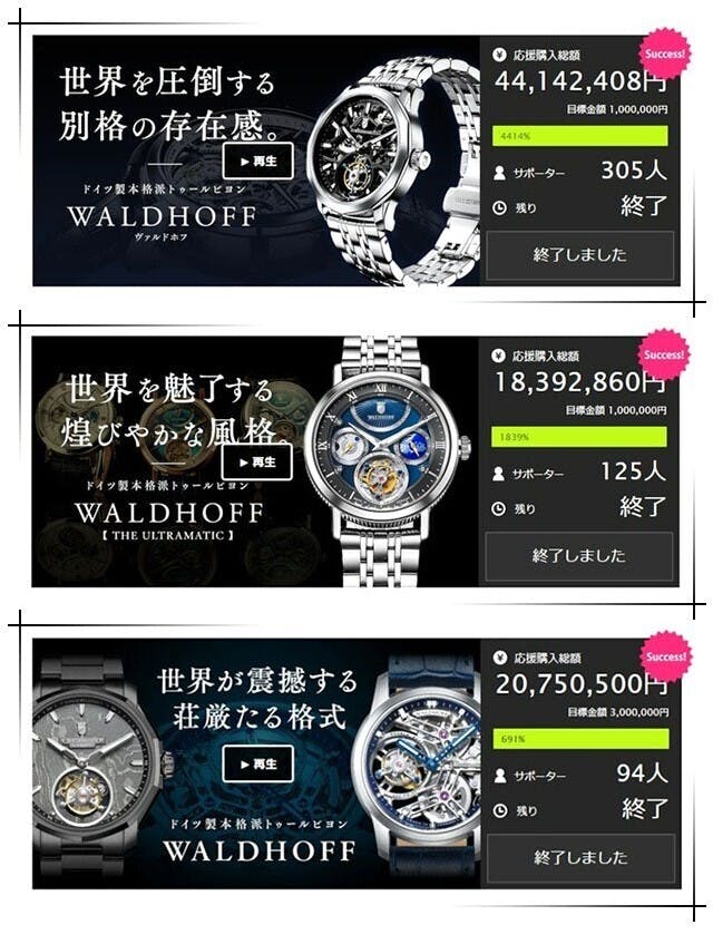 過去3回のWALDHOFFプロジェクトにて、他を含め累計1億円以上のご支援を皆さまから頂きました。