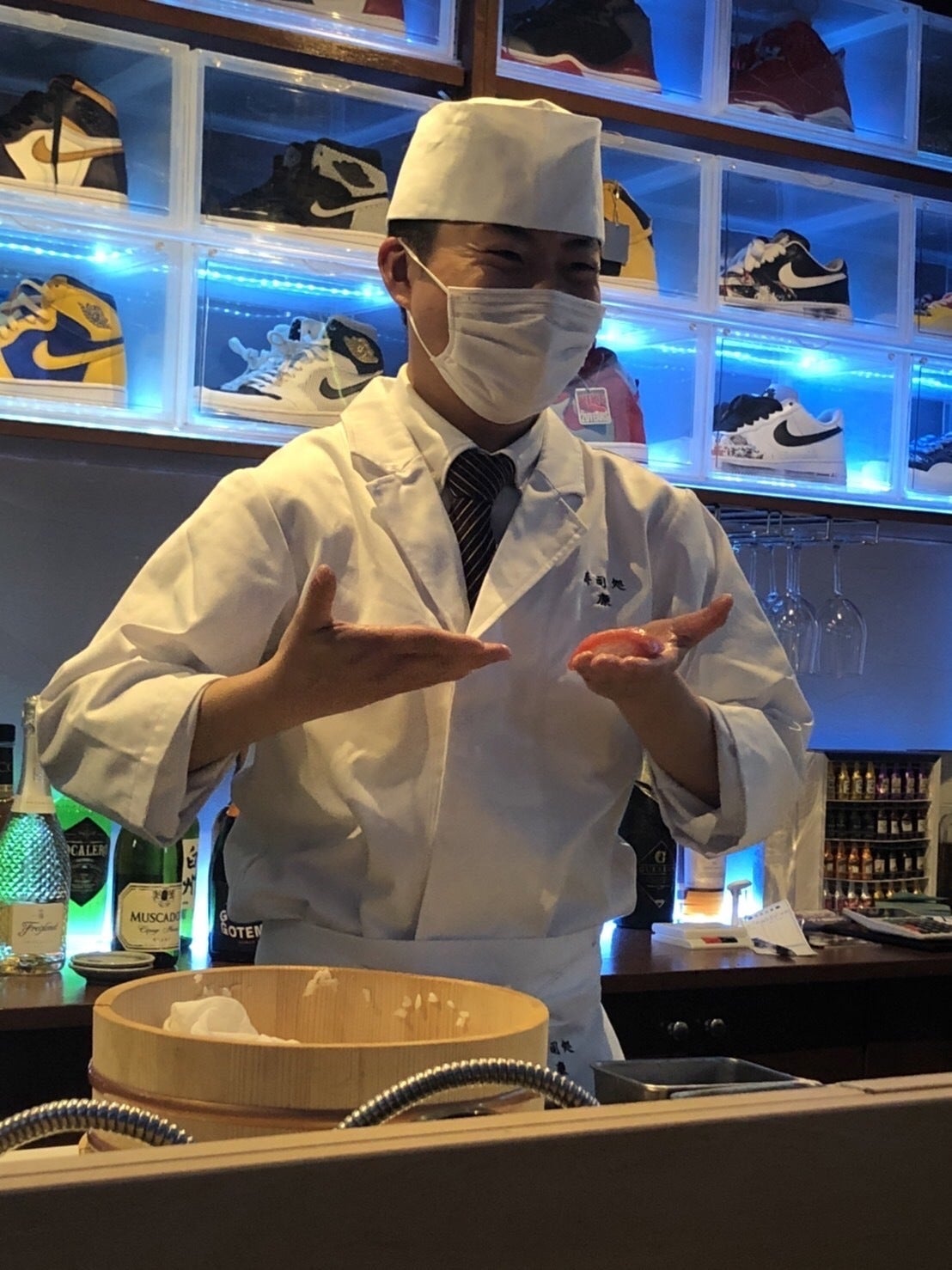 寿司職人としての経歴は地元民、いや今では全国でも知られている【回転寿司 トリトン】で約8年間勤務をしておりました。