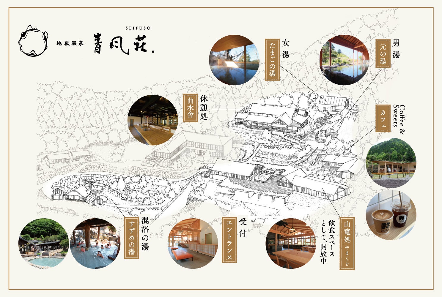 私たちはこの想いを震災やコロナという逆境を乗り越える機により明確に実現を目指し、施設の復旧に加え『もっとこの地でのんびりして頂く、もっと人生の癒しと活力となる場になる』ために、温泉・宿泊・料理というこれまでの癒しの要素に加え、カフェを新設いたしました。