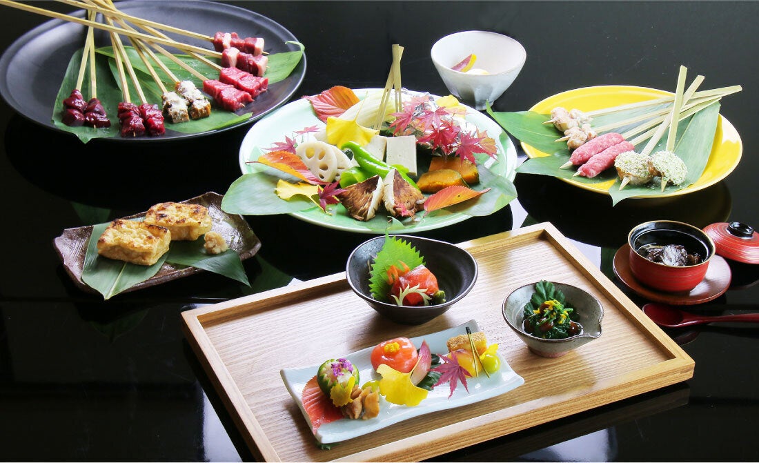 炭火で焼く食べ方は継承しつつ、地獄温泉でなければ食べられないユニークで美味しい料理コースです。