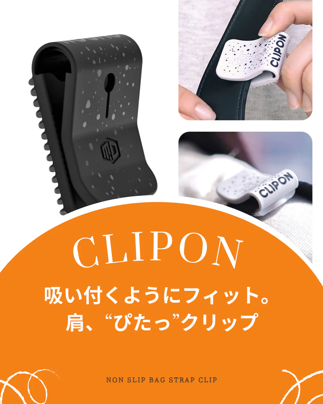 CLIPONは、そんなお悩みを解消するために生まれた商品です。簡単に取り付けでき、どんなバッグにも対応。滑り落ちを防ぐことで、週末のリラックスタイムをより快適にお過ごしいただけます。