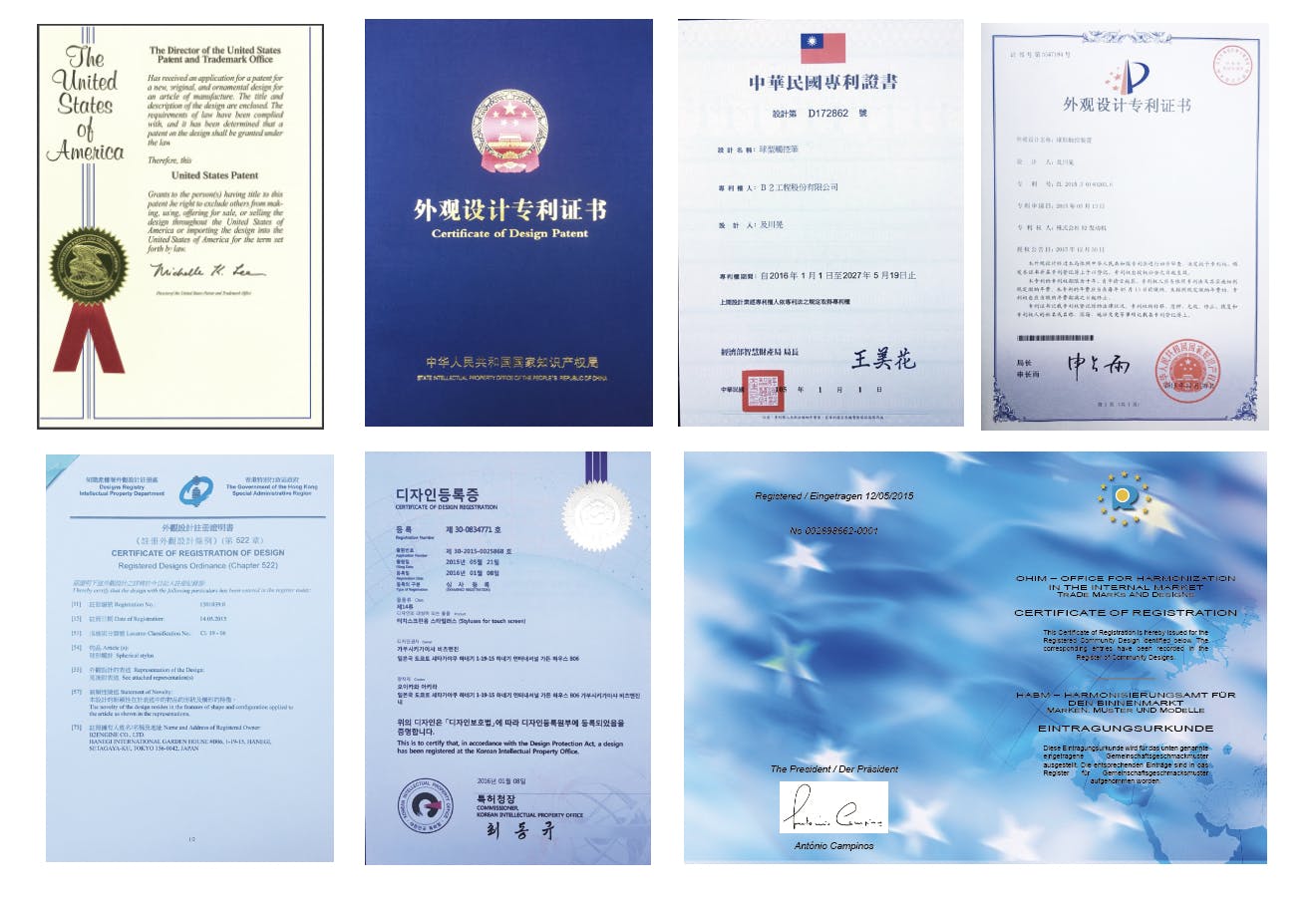 デジコロは、すでにUSA.、EU 、中国、韓国、香港、台湾においてそのデザインを「球型タッチペン」としてデザイン特許を取得しています。