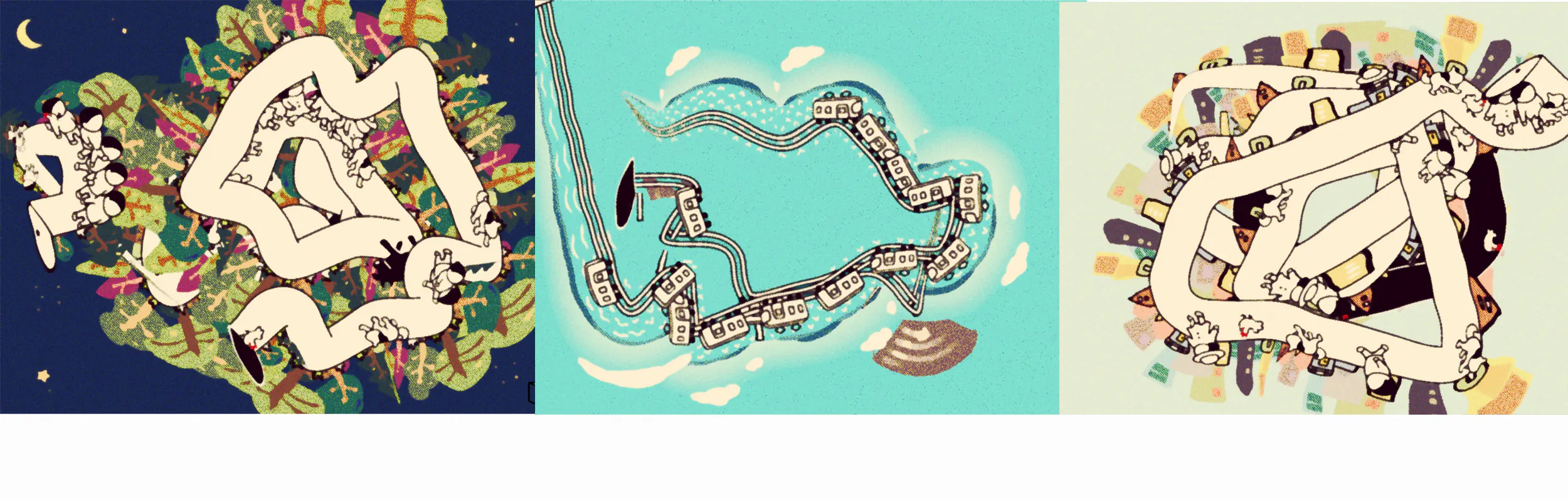 画面は次々と変化して、森に行ったり海に行ったり動物や電車も出てきます。