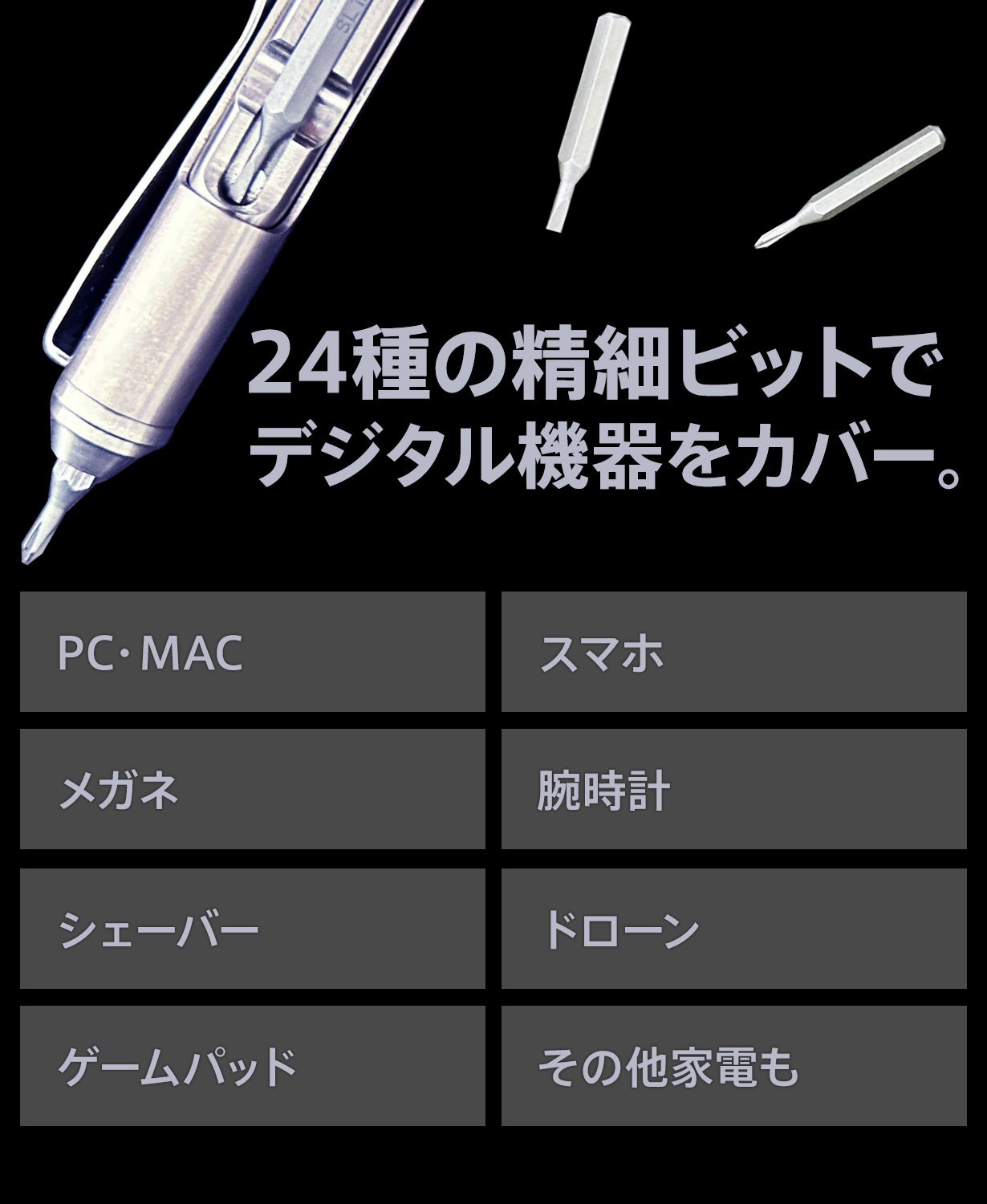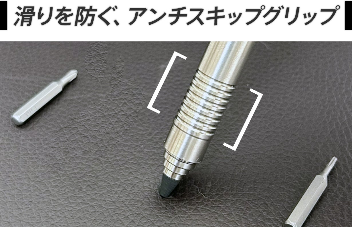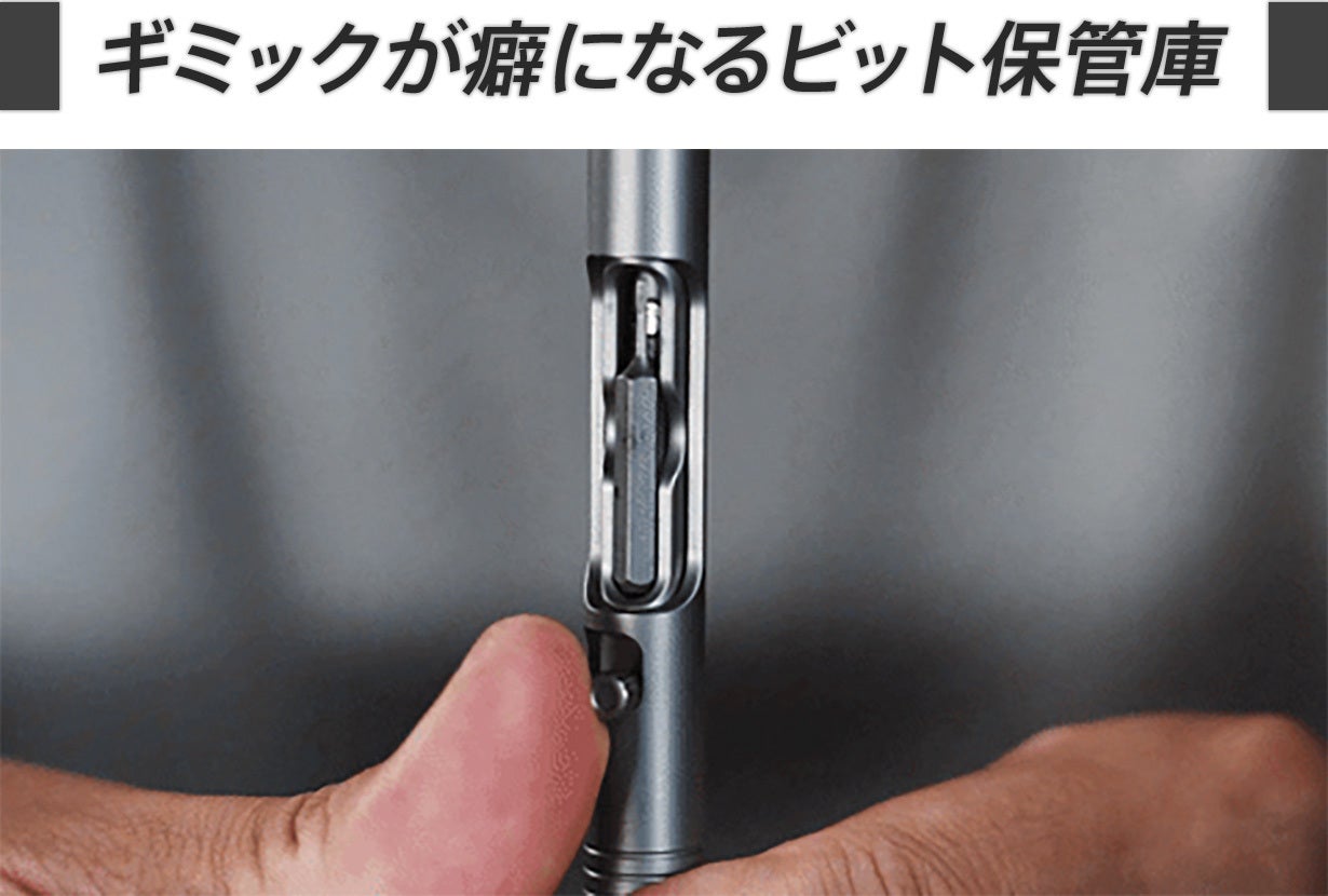 ペン本体に2ビット分の収納スペースを備え、持ち運びの手間を減らし、