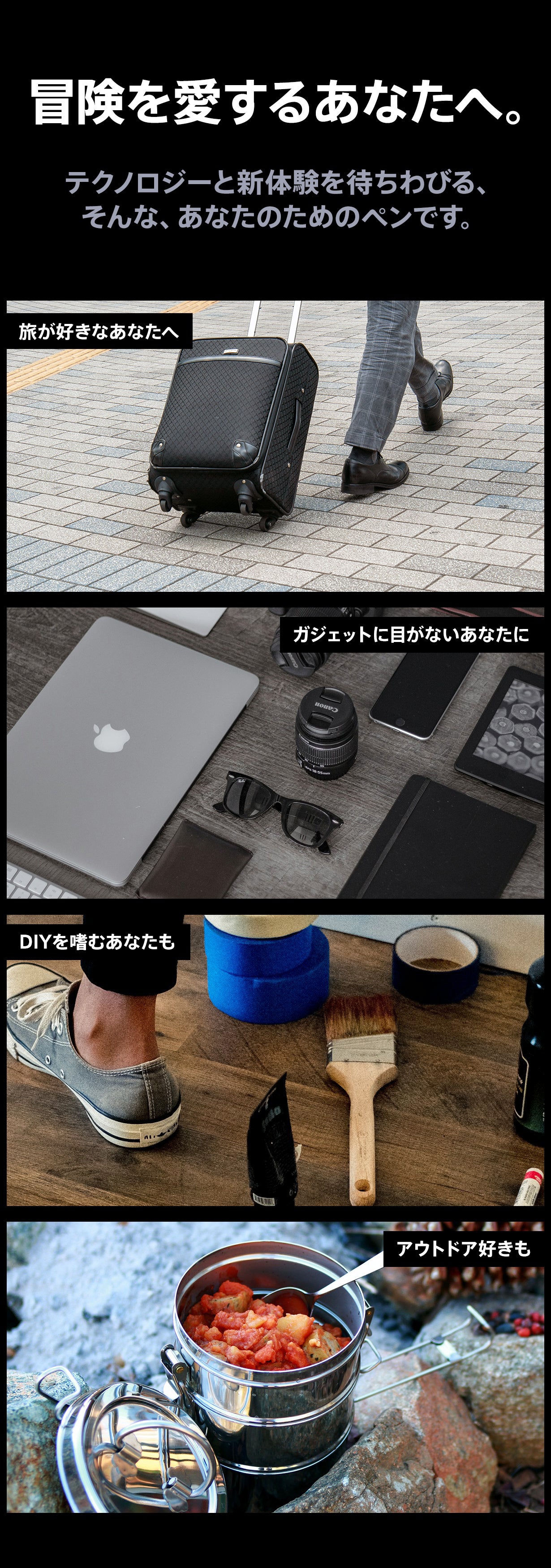 アウトドアシーンや身体に近いところで使用するペンの素材としては、