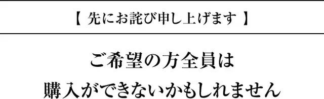 できるだけご希望頂く皆様にご購入頂けるよう努力を重ねておりますが、ご用意できる数量に限りが出ることがございます。