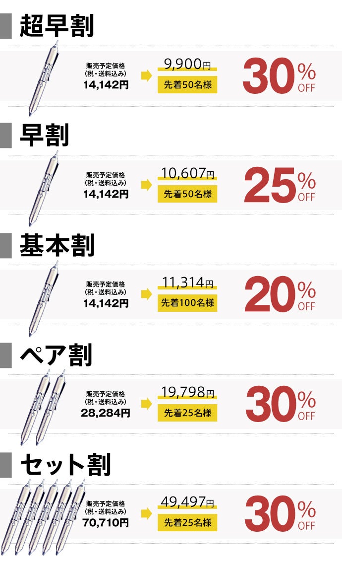 また、お得な価格でご購入頂けるのも、クラウドファンディングの仕様上早い者勝ちとなります。