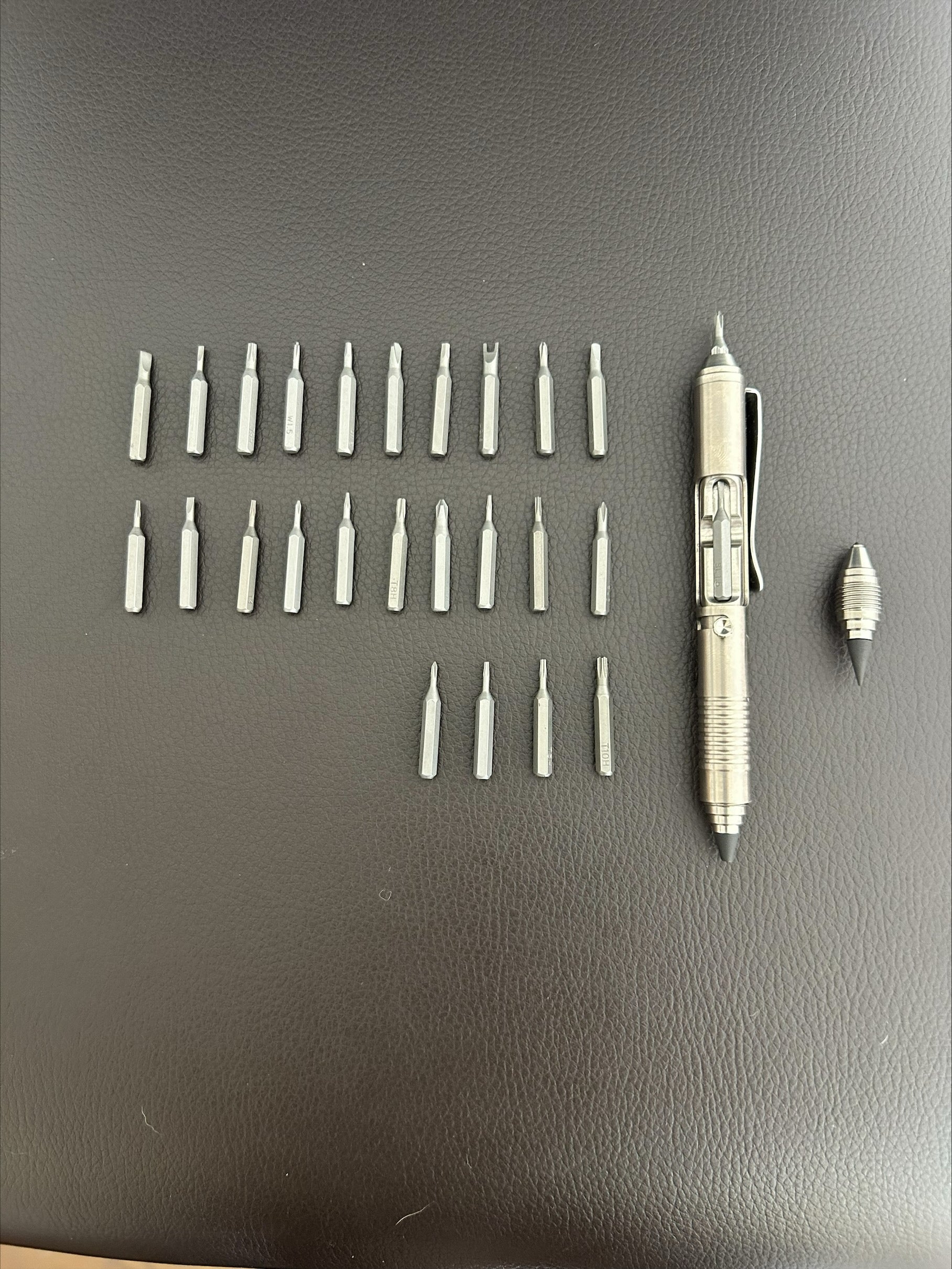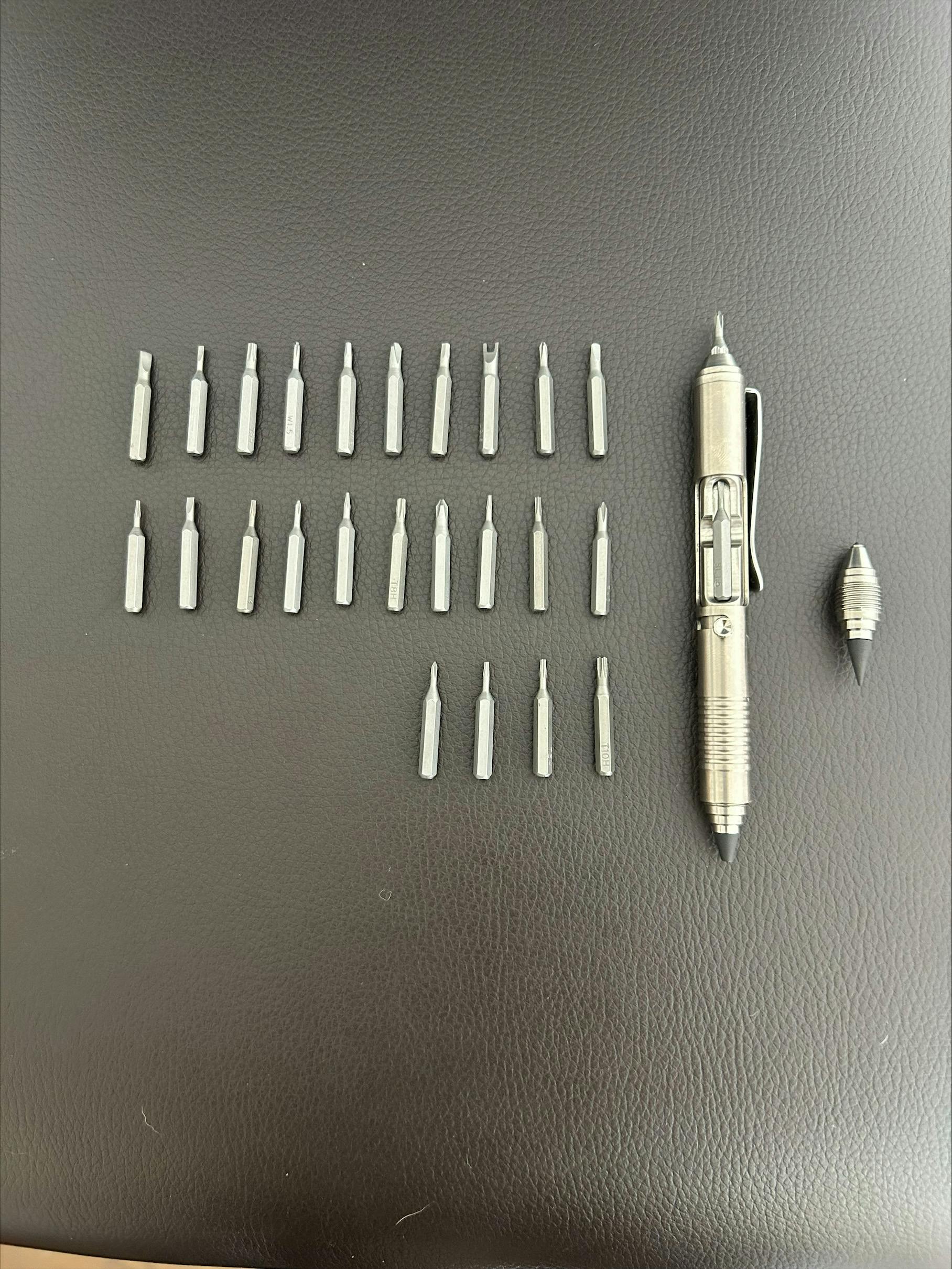 今回のチタン製多機能ペンドライバーは、精巧なボルトアクション機構、高耐久のチタン素材、24種類のビット付属といった多機能性を持ち合わせ、長くお使いいただけるよう設計されています。日常はもちろん、アウトドアや防災時など、さまざまな場面で活躍する頼れる一本です。