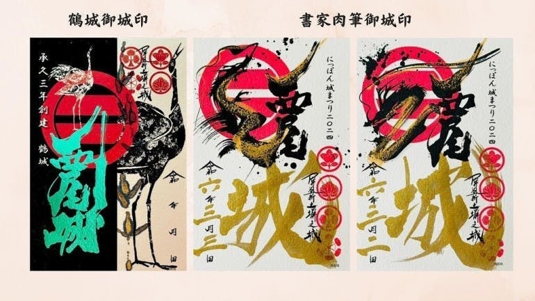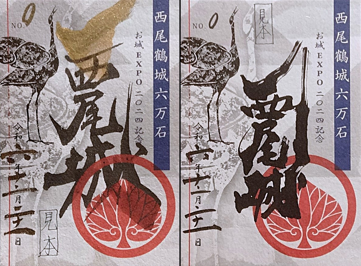 (画像はにっぽん城まつり2024で発売された現在の鶴城verと限定御城印。これまでに制作された「西尾城の御城印」も是非ごらんください。)