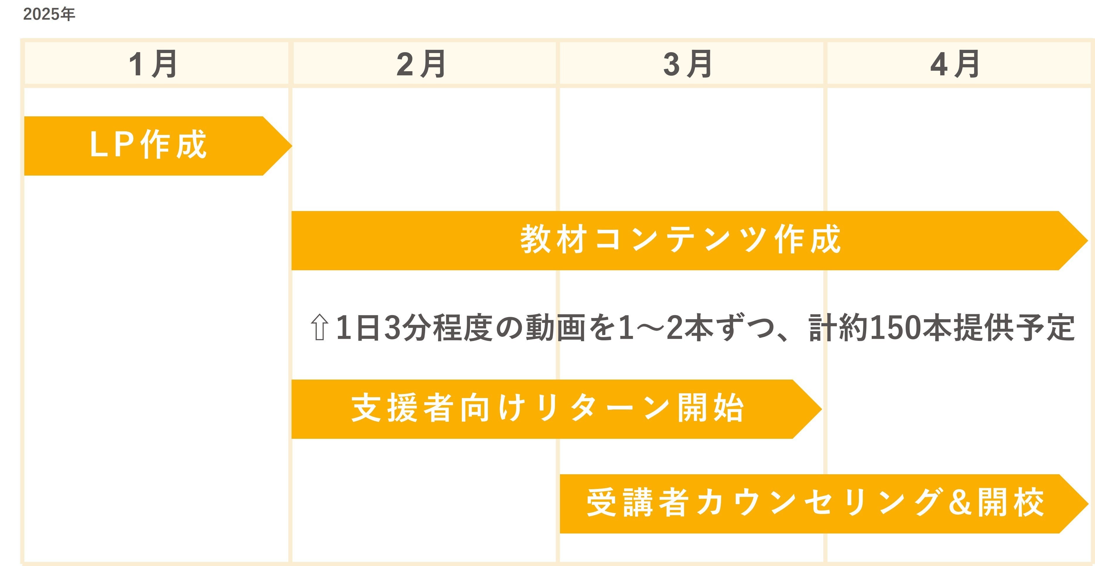 2025/01/08 18:00皆さま、温かいご支援を本当にありがとうございました!おかげさまで、クラウドファンディングが無事にサクセスしました。ビジネス部門で100万以上の資金調達の成功確率は5%以下とも言われる挑戦を、こうして形にできたのは、応援してくださった皆さま一人ひとりのお力添えのおかげです。このプロジェクトを通じて、「女性が未経験からでも安心して学べる場」を作りたいという想いを多くの方に共感いただき、感謝の気持ちでいっぱいです。いただいた支援は、受講者の皆さまが「自分らしい未来」を築けるよう、全力で活用させていただきます。ここからが本当のスタートです。これからも引き続き温かく見守っていただけたら幸いです。心からの感謝を込めて。 もっと見るついに100%達成!