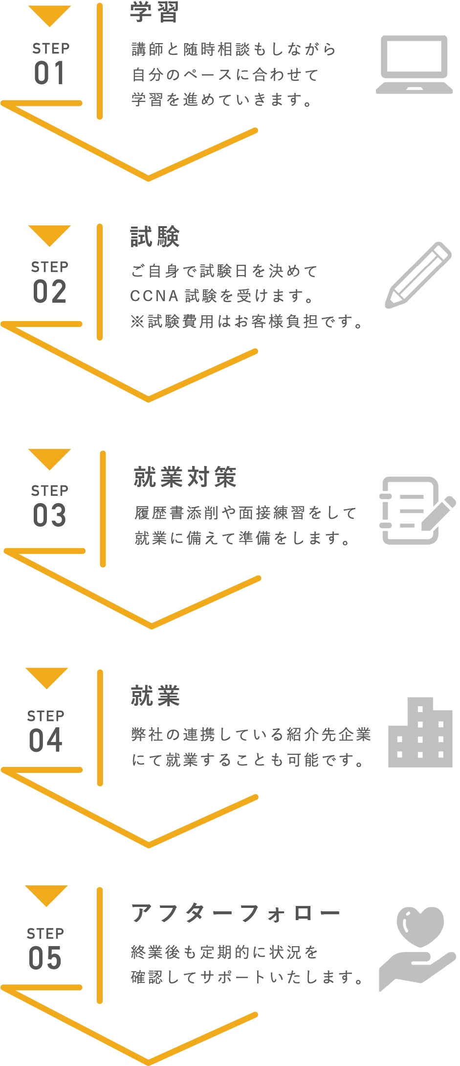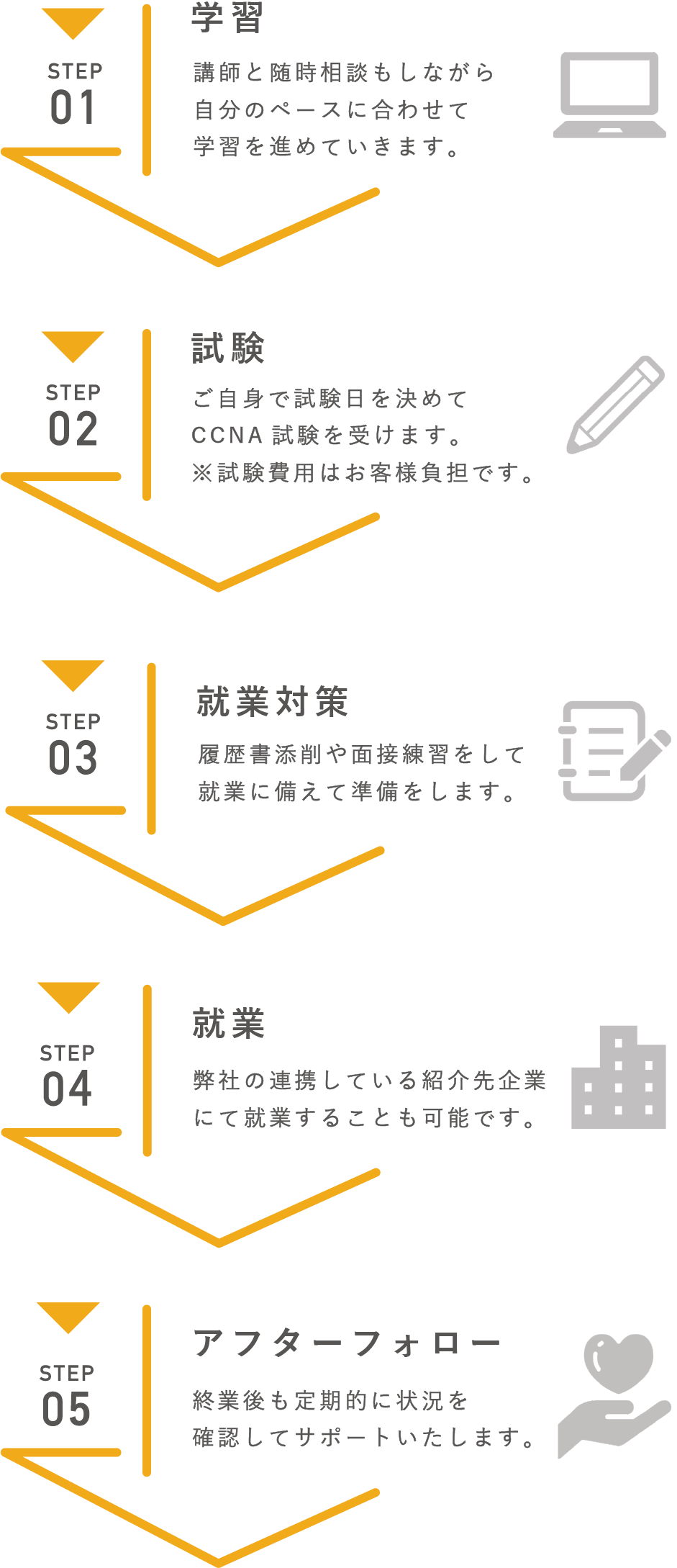 インフラニアでは受講から就業まで一貫してサポートいたします。