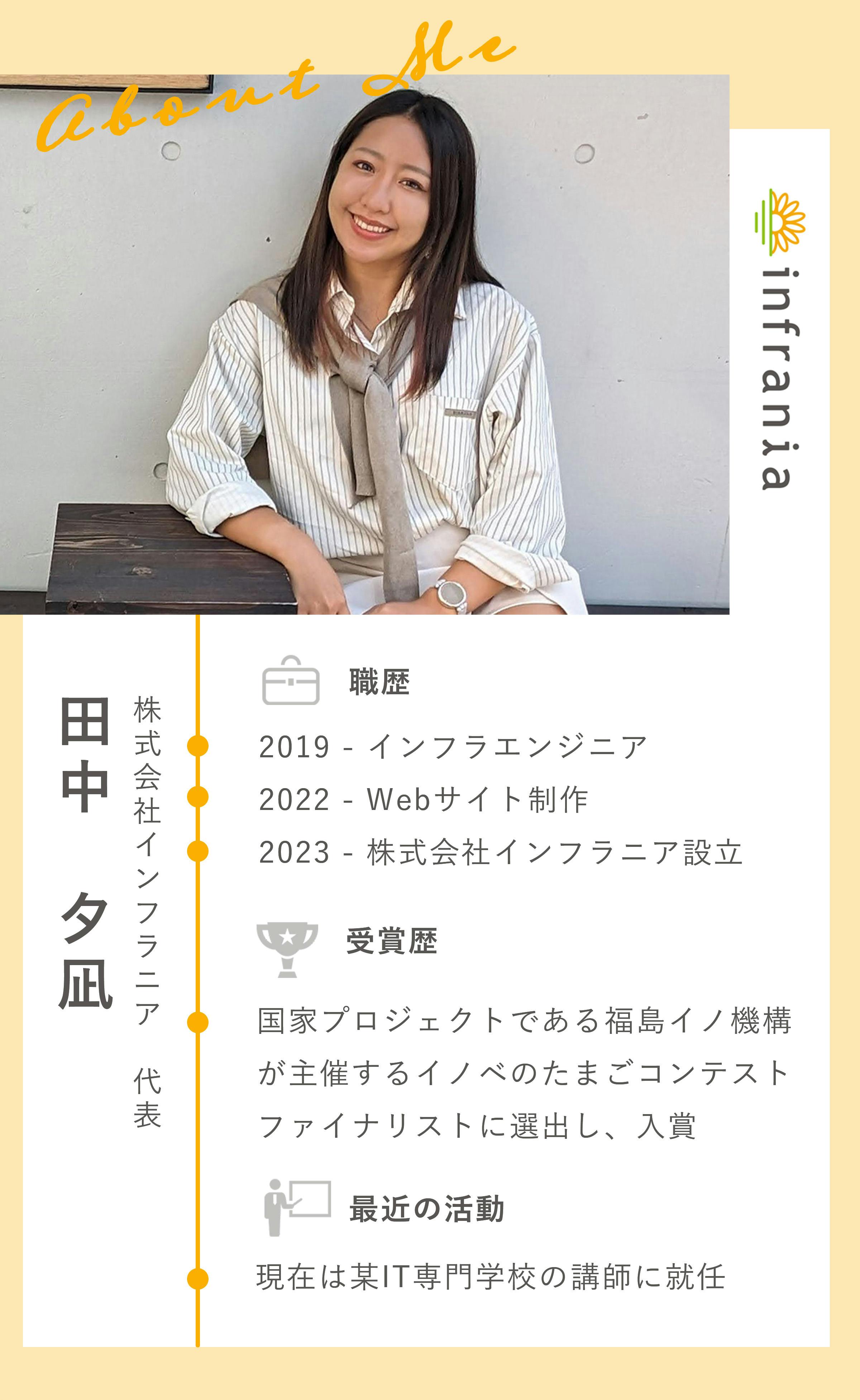 こんにちは!株式会社インフラニア代表の田中夕凪です。