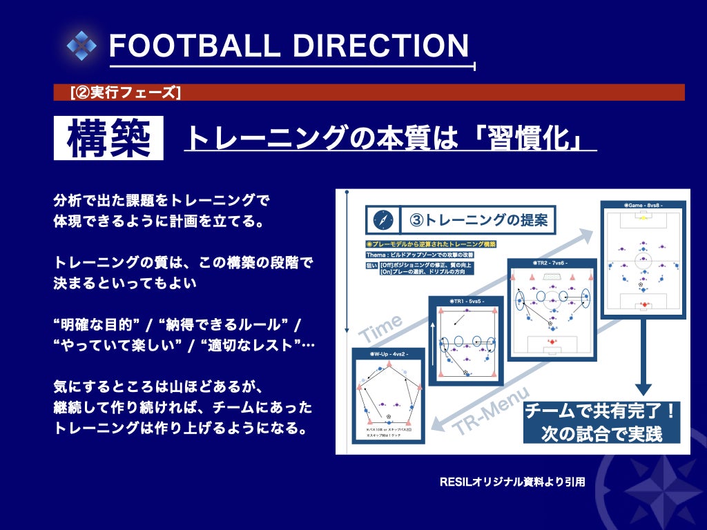 毎回のトレーニングついて、事前に打ち合わせを行なったり、実際やってみてどう感じたか?より良くできる方法はないのか?を追求していくことは誰でも大事なことはわかっています。