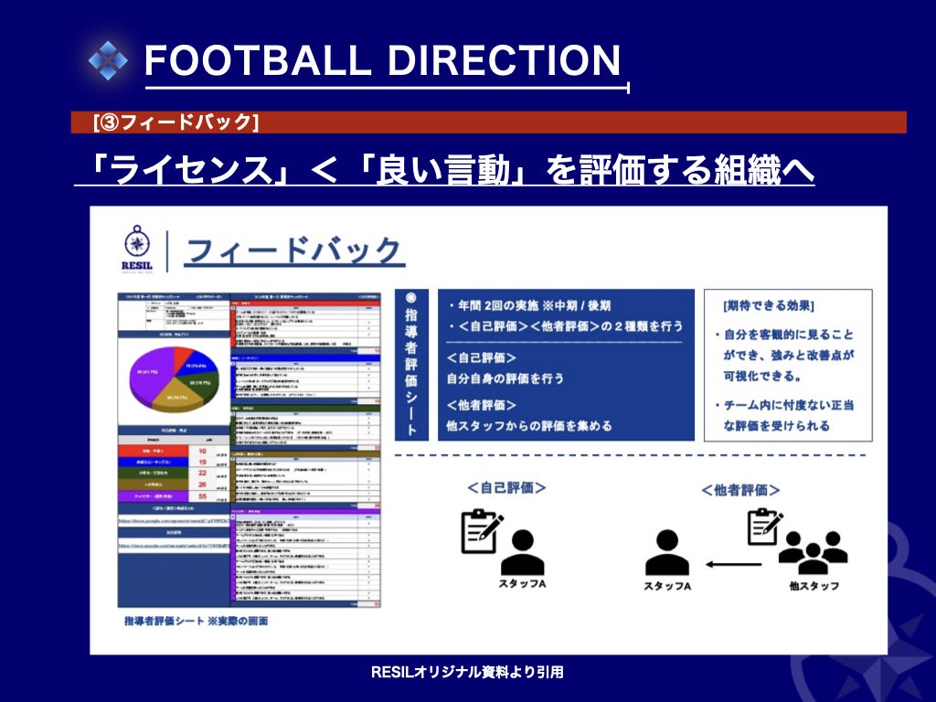 この"評価"という項目を甘くみると指導者の離脱率は上がり、選手に対してのアプローチのクオリティも下がるのでチームに大きな影響を与えます。
