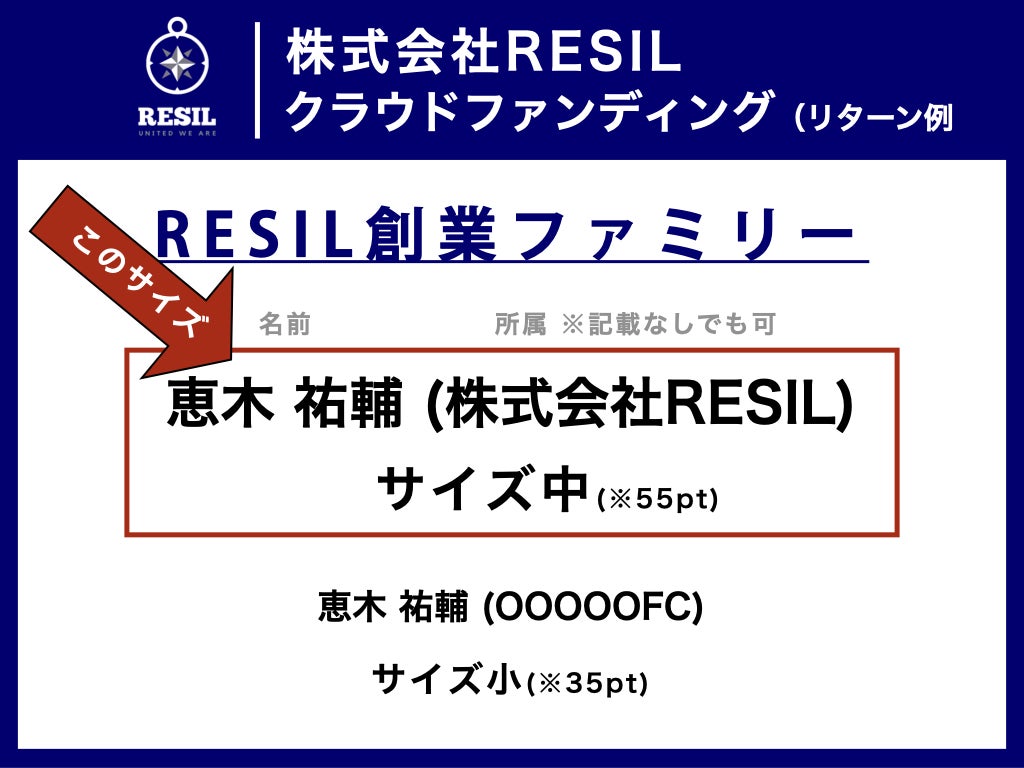 (株)RESILの創業ファミリーとしてお名前をホームページに記載させて頂きます!(文字サイズ : 中)